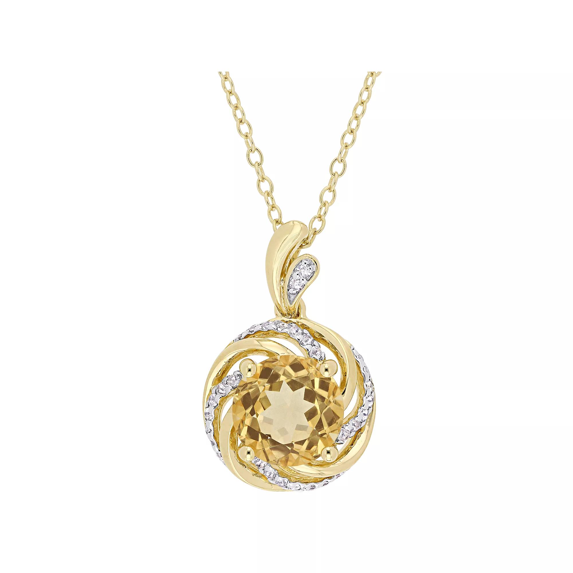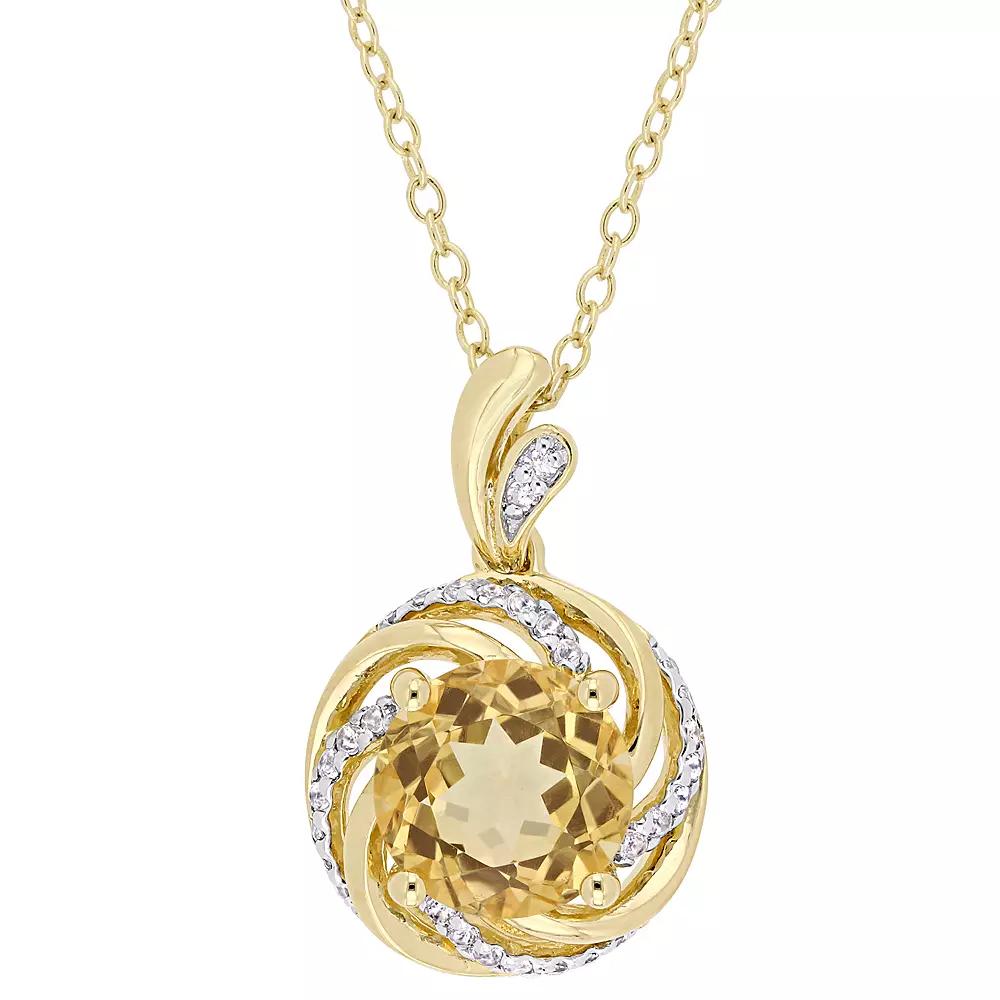 Add a touch of sparkle to any ensemble with this stunning citrine and diamond accent halo pendant from Stella Grace. Add a touch of sparkle to any ensemble with this stunning citrine and diamond accent halo pendant from Stella Grace. PENDANT DETAILS Drop length: 12.7 mm Chain length: 18 in. Chain type: cable Clasp: spring-ring Metal: sterling silver Plating: 18k gold Finish: polished Packaging: boxed STONE DETAILS Stone type: citrine, white topaz Total weight: 1 7/8 ct. Shape: round Setting: pave, prong Gemstones may have been treated to enhance their appearance. Special care may be required. Please visit our Gemstone Treatment & Special Care Guide for more information. Image(s) may be enlarged to show detail. Size: 18". Color: Yellow. Gender: female. Age Group: adult.