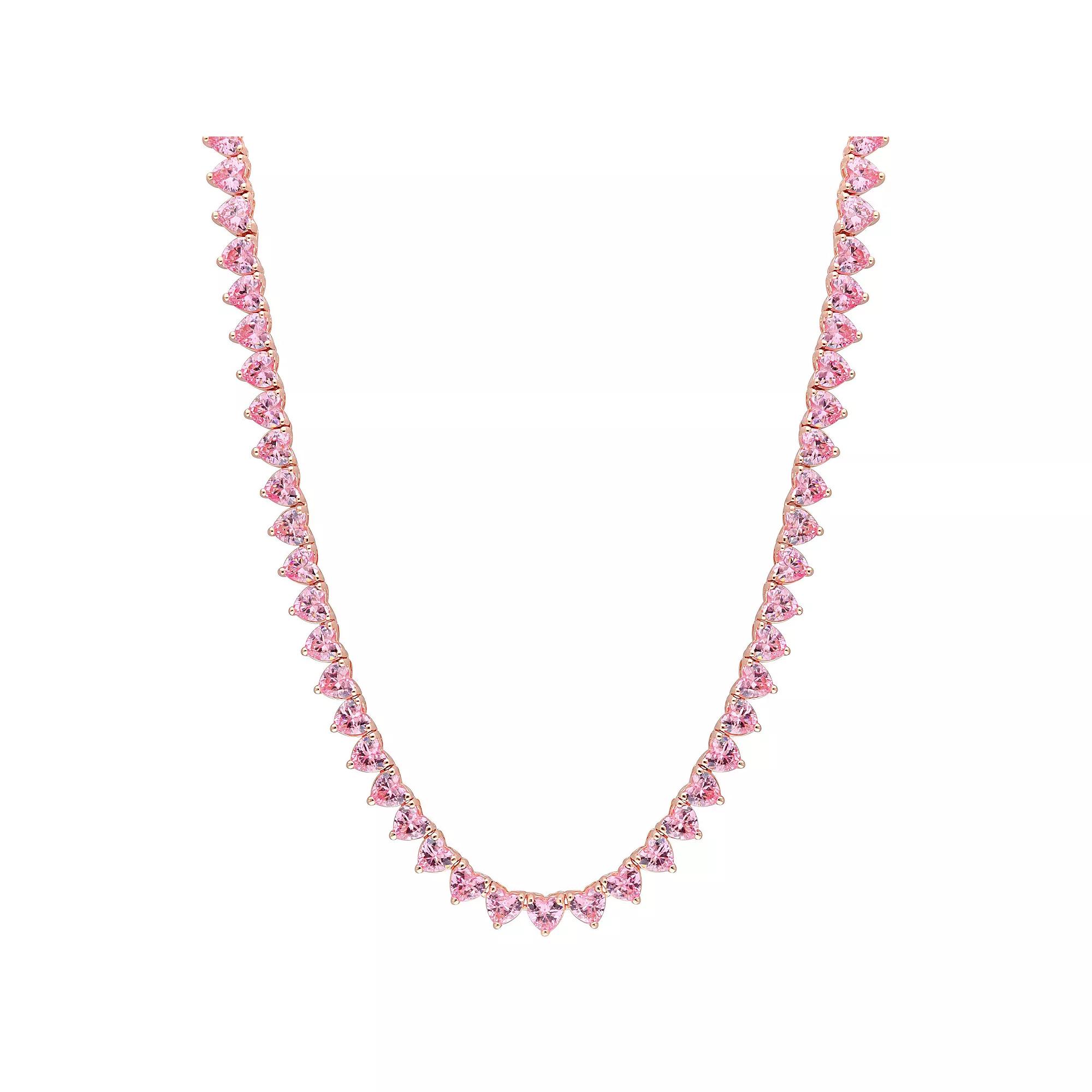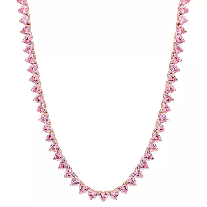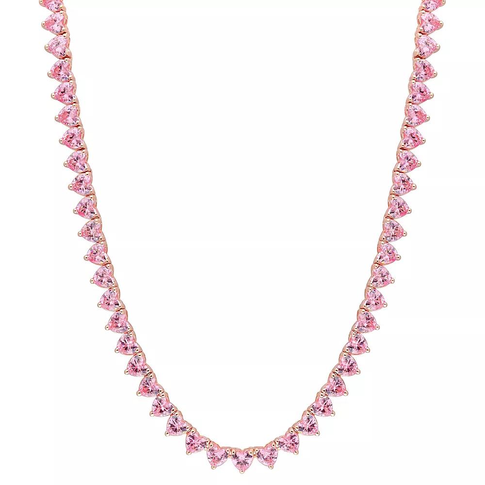 Accessorize in style with this Stella Grace 18k Rose Gold Over Silver Heart-Shape Lab-Created Pink Sapphire Tennis Necklace. Click on this JEWELRY & WATCHES GUIDE to learn about fit, styles, materials and more! Accessorize in style with this Stella Grace 18k Rose Gold Over Silver Heart-Shape Lab-Created Pink Sapphire Tennis Necklace. Click on this JEWELRY & WATCHES GUIDE to learn about fit, styles, materials and more! FEATURES Chain length: 18 in. Chain type: tennis Clasp: tongue and groove Nickel free Metal: sterling silver Plating: 18k rose gold flash plated Finish: polished Packaging: boxedSTONE DETAILS Stone type: lab-created pink sapphire Shape: heart Setting: prong Gemstones may have been treated to enhance their appearance. Special care may be required. Please visit our Gemstone Treatment & Special Care Guide for more information. Size: 18. Color: Rose Tone. Gender: female. Age Group: adult. Material: Gold Over Sterling.