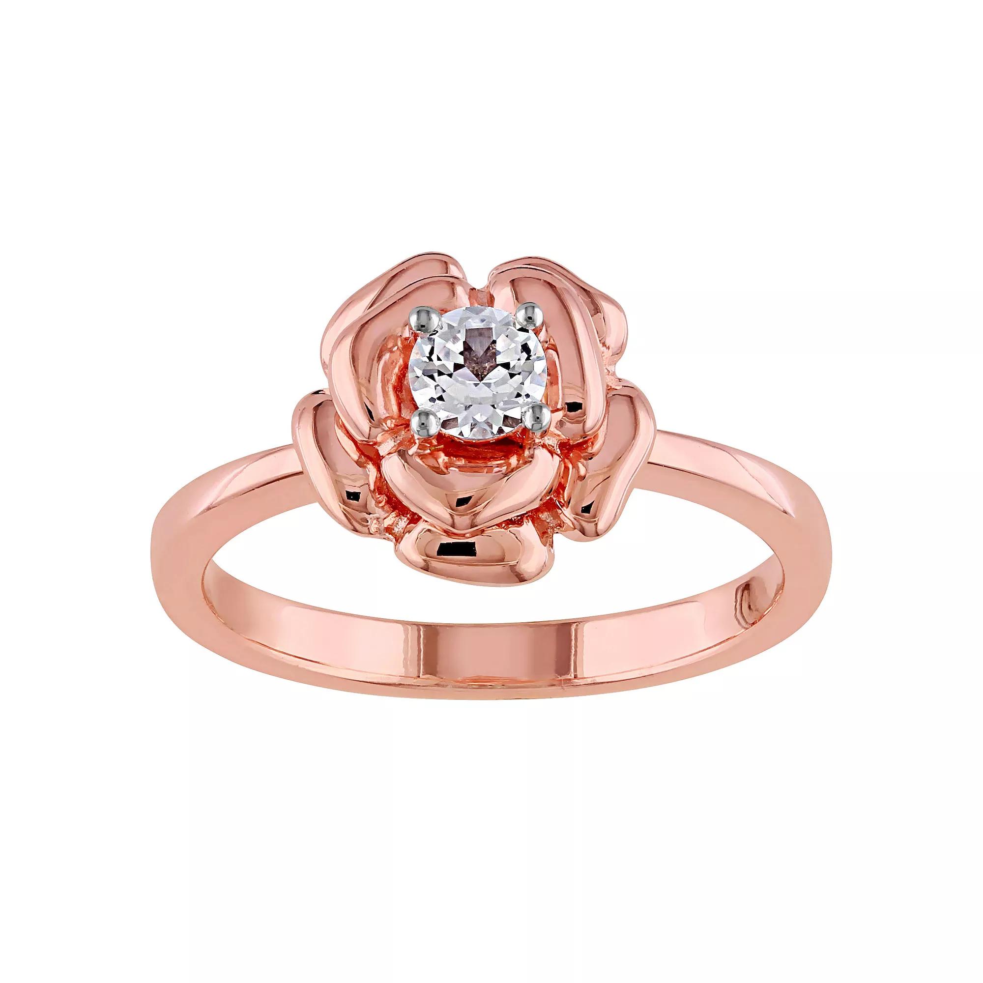 Charming and elegant, this Stella Grace flower ring complements your look beautifully. Charming and elegant, this Stella Grace flower ring complements your look beautifully. Width: 10.3 mm Metal: sterling silver Plating: 18k rose gold flash plated Finish: polished Packaging: boxedSTONE DETAILS Stone type: lab-created white sapphire Total weight: 1/3 ct. Center stone size: 4 mm x 4 mm Shape: round Setting: prong Gemstones may have been treated to enhance their appearance. Special care may be required. Please visit our Gemstone Treatment & Special Care Guide for more information. Please note, due to the high value of this item, a signature may be required upon delivery. Size: 7. Gender: female. Age Group: adult. Pattern: floral. Material: Gold Over Sterling.
