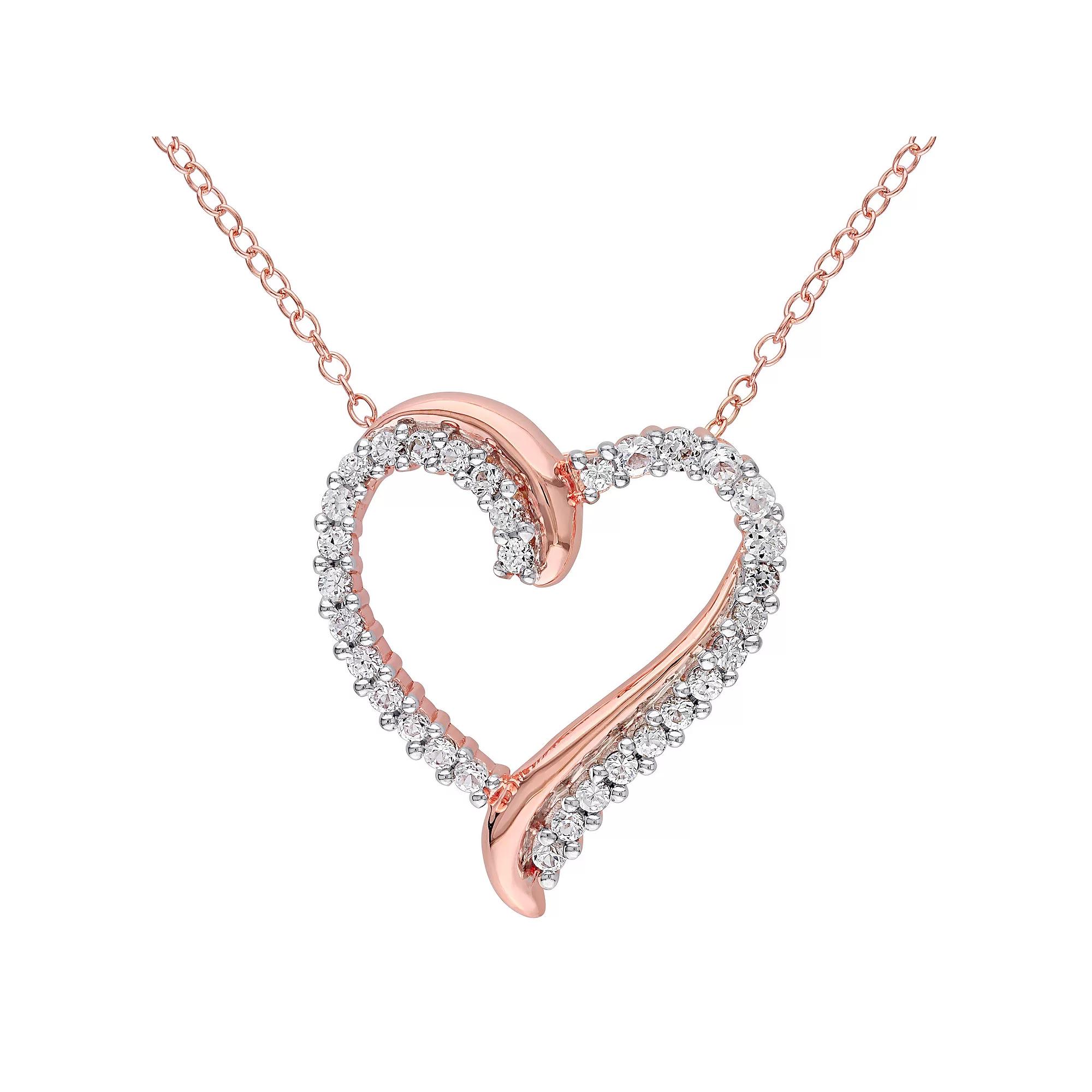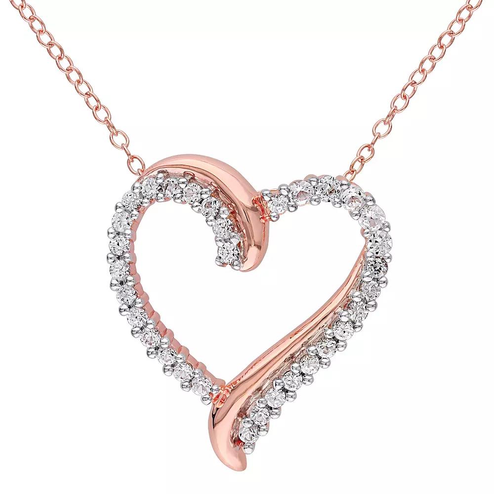 Stella Grace 18k Rose Gold Over Silver Lab Created White Sapphire Heart Pendant Necklace, Women's,