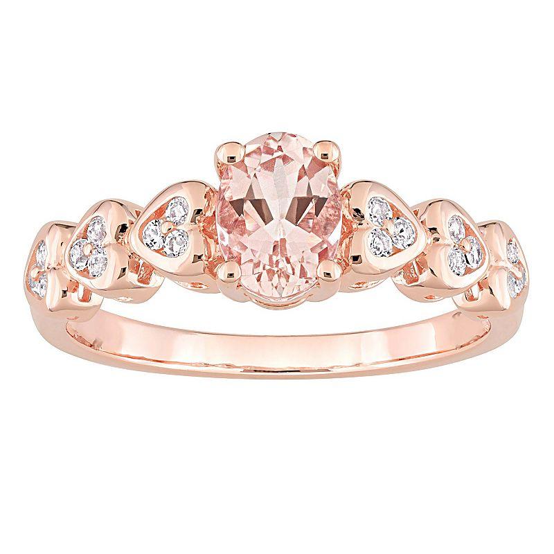 A beautiful oval morganite center stone and scintillating white topaz accents give this Stella Grace ring an unforgettable look you'll love. A beautiful oval morganite center stone and scintillating white topaz accents give this Stella Grace ring an unforgettable look you'll love. Width: 7 mm Metal: sterling silver Plating: 18k rose gold flash plated Finish: polished Packaging: boxedSTONE DETAILS Stone type: morganite, white topaz Total weight: 7/8 ct. Center stone size: 7 mm x 5 mm Shape: oval, round Setting: prong Gemstones may have been treated to enhance their appearance. Special care may be required. Please visit our Gemstone Treatment & Special Care Guide for more information. Please note, due to the high value of this item, a signature may be required upon delivery. Size: 9. Color: Pink. Gender: female. Age Group: adult. Material: Gold Over Sterling.