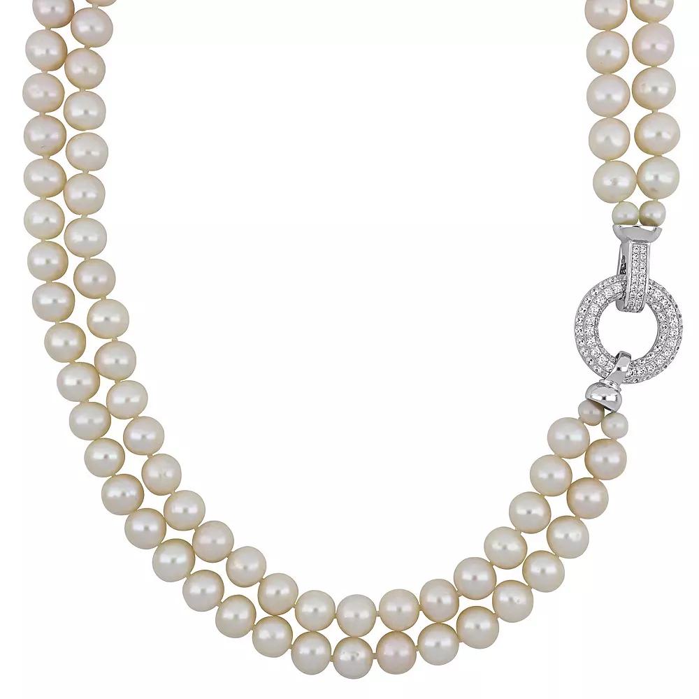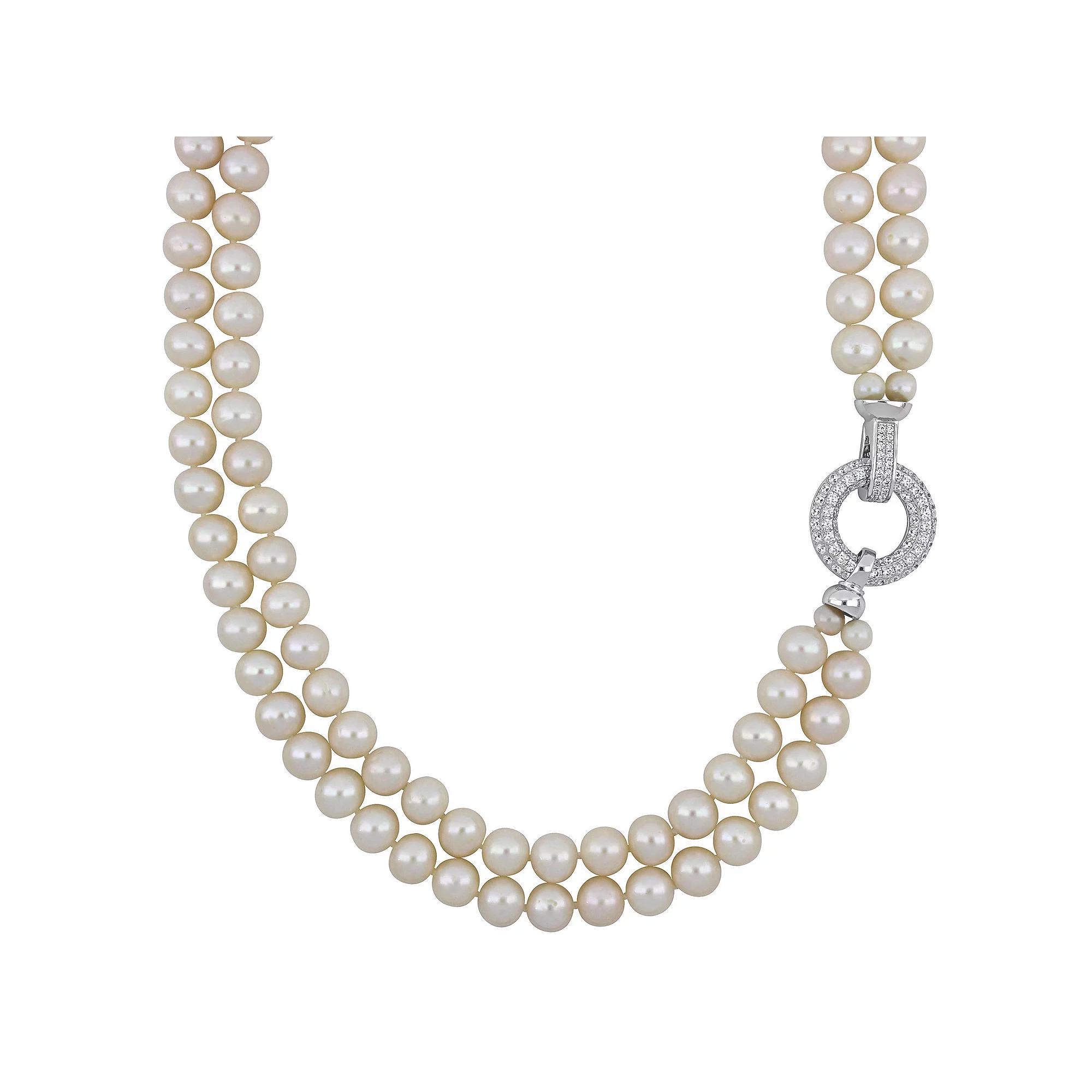 Accessorize in style with this Stella Grace Freshwater Cultured Pearl 2-Strand Necklace. Click on this JEWELRY & WATCHES GUIDE to learn about fit, styles, materials and more! Accessorize in style with this Stella Grace Freshwater Cultured Pearl 2-Strand Necklace. Click on this JEWELRY & WATCHES GUIDE to learn about fit, styles, materials and more! FEATURES Clasp: fold-over Nickel free Metal: sterling silver Plating: rhodium Finish: polished Packaging: boxedSTONE DETAILS Stone type: cubic zirconia Shape: round Setting: prongCULTURED PEARL DETAILS Type: freshwater Diameter: 7.5 - 8 mm Shape: near round Color: white Gemstones may have been treated to enhance their appearance. Special care may be required. Please visit our Gemstone Treatment & Special Care Guide for more information. Size: 17. Gender: female. Age Group: adult.