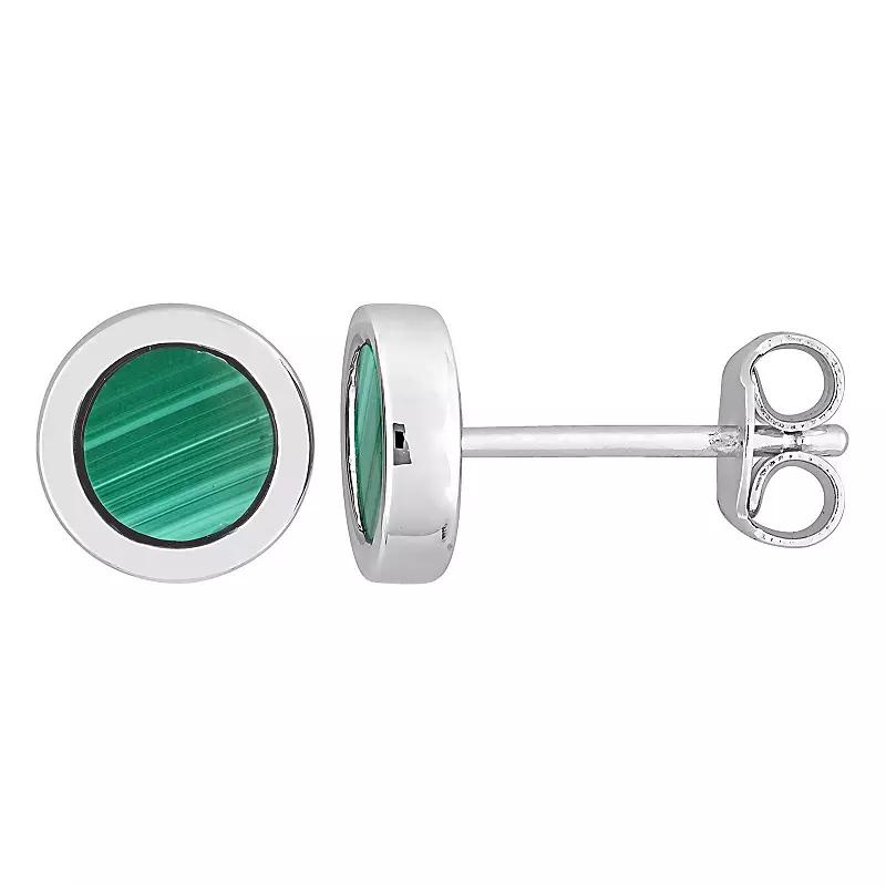 Refine your style with these classy malachite stud earrings. Refine your style with these classy malachite stud earrings. Nickel free Metal: sterling silver Backings: post Packaging: boxed Plating: rhodium Finish: polished Diameter: 2.2 mmSTONE DETAILS Stone type: malachite Total weight: 5/8 ct. Stone size: 5.5 mm x 5.5 mm Shape: round double flat Gemstones may have been treated to enhance their appearance. Special care may be required. Please visit our Gemstone Treatment & Special Care Guide for more information. Color: Green. Gender: male. Age Group: adult.