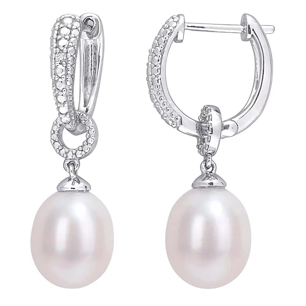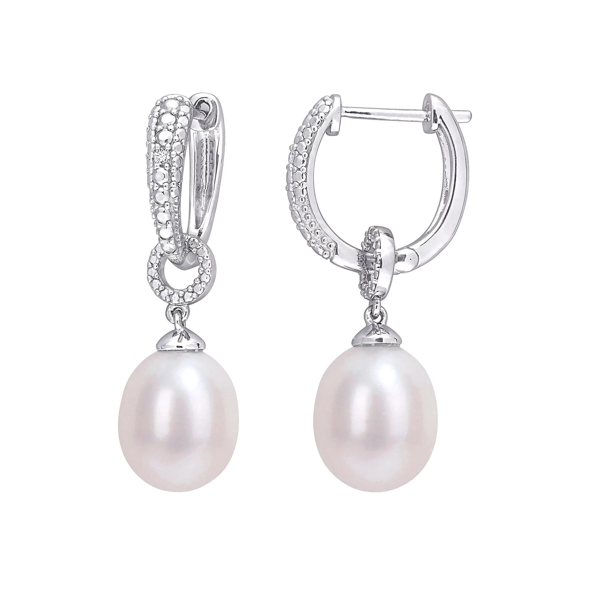 Accessorize in style with these Stella Grace Sterling Silver Freshwater Cultured Pearl & Diamond Accent Drop Hoop Earrings. Click on this JEWELRY & WATCHES GUIDE to learn about fit, styles, materials and more! Accessorize in style with these Stella Grace Sterling Silver Freshwater Cultured Pearl & Diamond Accent Drop Hoop Earrings. Click on this JEWELRY & WATCHES GUIDE to learn about fit, styles, materials and more! FEATURES Length: 29.4 mm x 6.1 mm Backings: clip-on Nickel free Metal: sterling silver Plating: rhodium Finish: polished Packaging: boxedDIAMOND DETAILS Total weight: less than 1/10 ct. Color grade: HIJ Clarity: I3 Shape: round Setting: paveCULTURED PEARL DETAILS Type: freshwater Diameter: 8 - 8.5 mm Shape: rice Color: white Diamond weights are approximate. Diamond Total Weights may vary between .01 and .13 ct. Some diamonds consist of fewer than 17 facets. Gemstones may have been treated to enhance their appearance. Special care may be required. Please visit our Gemstone Treatment & Special Care Guide for more information. Image(s) may be enlarged to show detail. Size: One Size. Gender: female. Age Group: adult.
