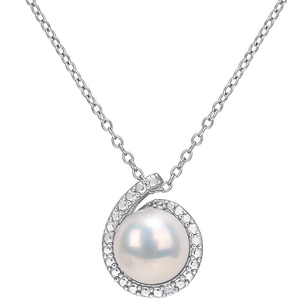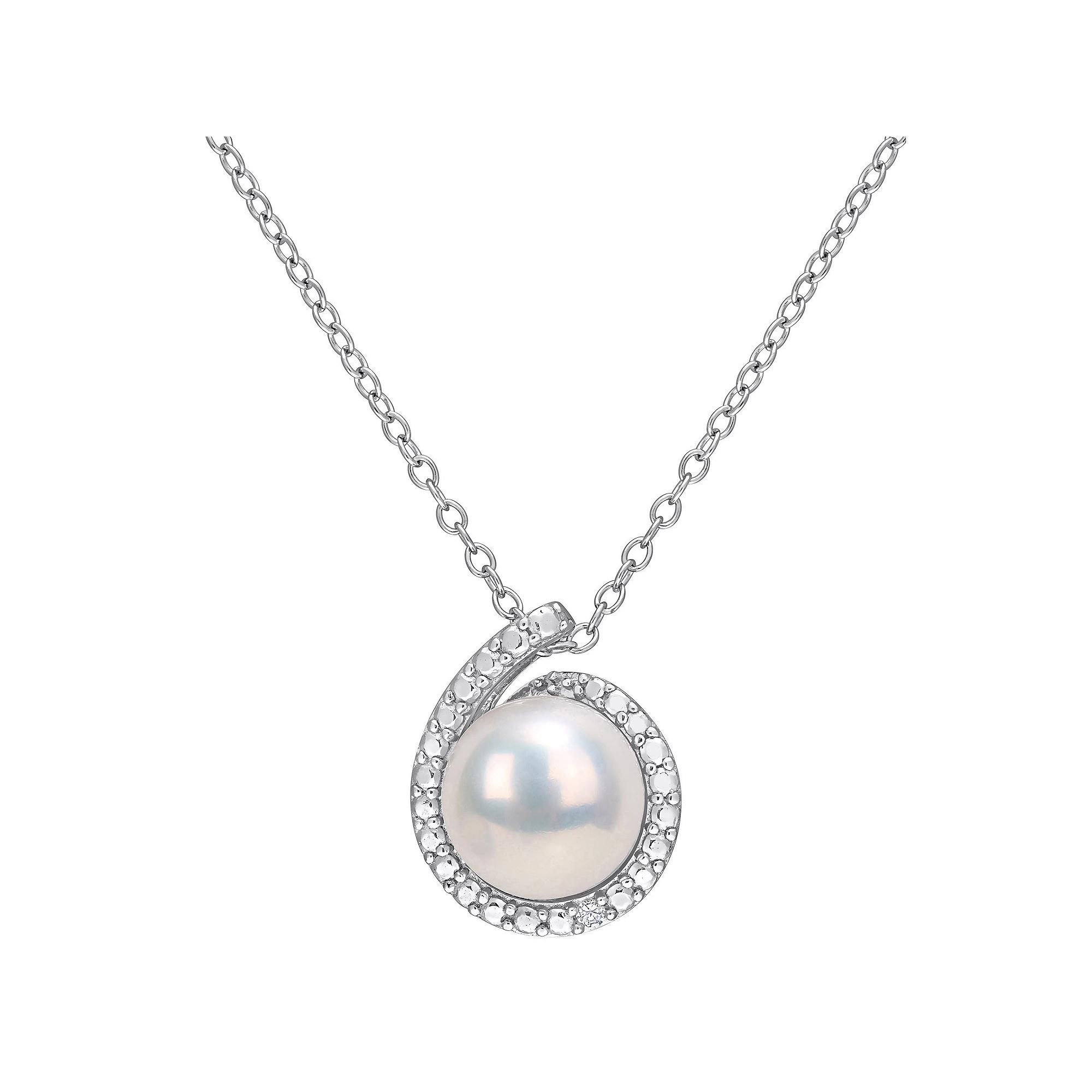 Accessorize in style with this Stella Grace Sterling Silver Freshwater Cultured Pearl & Diamond Accent Halo Pendant Necklace. Click on this JEWELRY & WATCHES GUIDE to learn about fit, styles, materials and more! Accessorize in style with this Stella Grace Sterling Silver Freshwater Cultured Pearl & Diamond Accent Halo Pendant Necklace. Click on this JEWELRY & WATCHES GUIDE to learn about fit, styles, materials and more! FEATURES Pendant length: 0.54L x 0.45W Chain length: 18 in. Chain type: cable Clasp: spring-ring Nickel free Metal: sterling silver Plating: rhodium Finish: polished Packaging: boxedDIAMOND DETAILS Total weight: less than 1/10 ct. Color grade: HIJ Clarity: I3 Shape: round Setting: shared prongCULTURED PEARL DETAILS Type: freshwater Diameter: 8 - 8.5 mm Shape: button Color: white Gemstones may have been treated to enhance their appearance. Special care may be required. Please visit our Gemstone Treatment & Special Care Guide for more information. Size: 18. Gender: female. Age Group: adult.