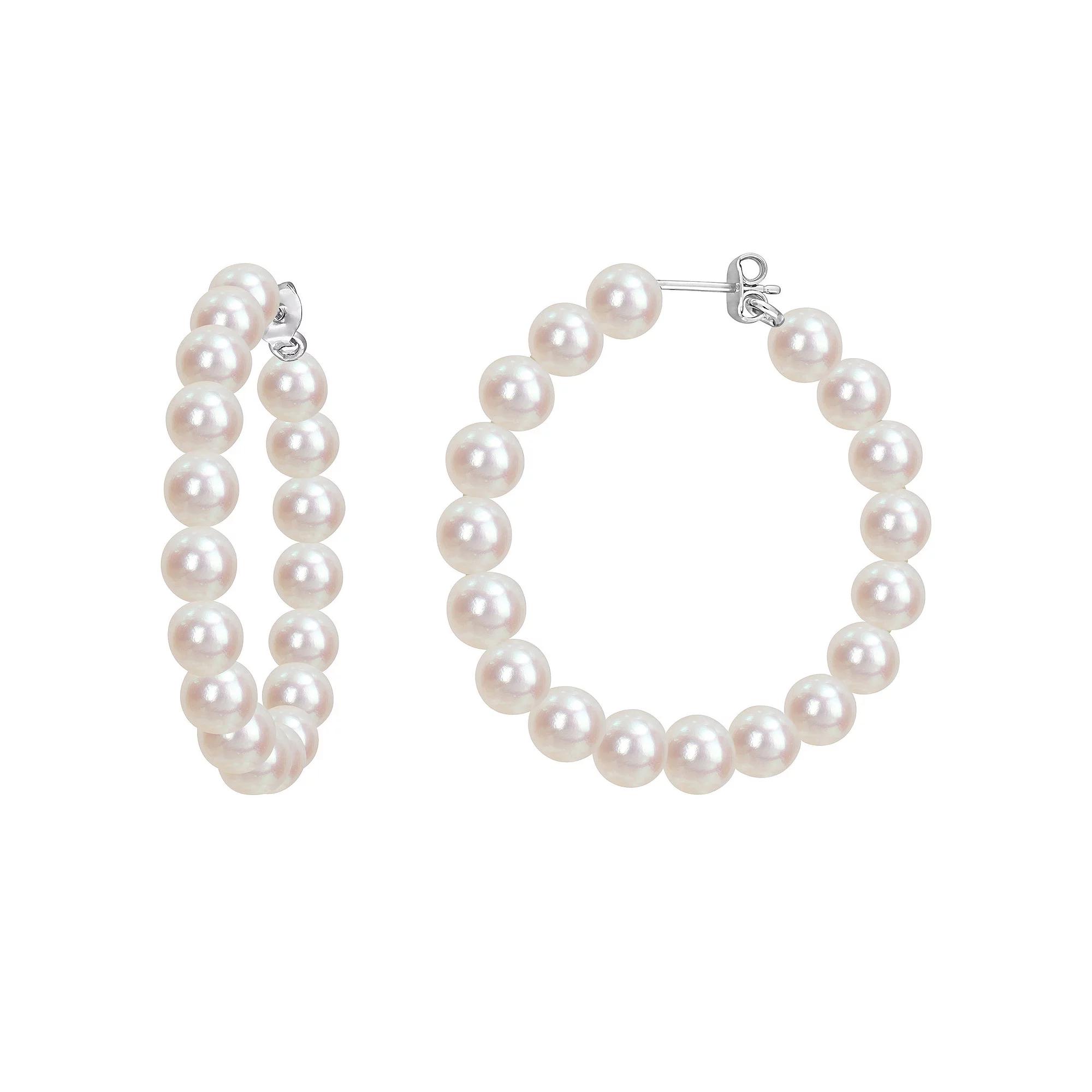 Complete your look with these elegant Stella Grace Sterling Silver Freshwater Cultured Pearl Hoop Earrings. Click on this JEWELRY & WATCHES GUIDE to learn about fit, styles, materials and more! Complete your look with these elegant Stella Grace Sterling Silver Freshwater Cultured Pearl Hoop Earrings. Click on this JEWELRY & WATCHES GUIDE to learn about fit, styles, materials and more! FEATURES Length: 43.9 mm x 6.3 mm Backings: post Nickel free Metal: sterling silver Plating: rhodium Finish: polished Packaging: boxedCULTURED PEARL DETAILS Type: freshwater Diameter: 6 - 6.5 mm Shape: near round Color: white Gemstones may have been treated to enhance their appearance. Special care may be required. Please visit our Gemstone Treatment & Special Care Guide for more information. Size: One Size. Gender: female. Age Group: adult.