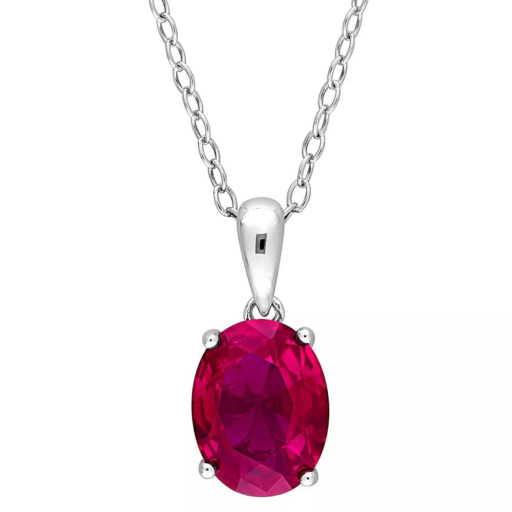 Turn heads with this Stella Grace Sterling Silver & Gemstone Oval Stud Pendant Necklace. Turn heads with this Stella Grace Sterling Silver & Gemstone Oval Stud Pendant Necklace. Chain type: cable Metal: sterling silver Finish: polished Pendant size: 0.59 x 0.28, 0.59 x 0.34 in. Packaging: boxed Necklace length: 18 in. Plating: rhodiumSTONE DETAILS Stone type: opal, aquamarine, simulated alexandrite, alexandrite, lab-created ruby Shape: oval Center stone size: 9 x 7 mm Setting: prong Gemstones may have been treated to enhance their appearance. Special care may be required. Please visit our Gemstone Treatment & Special Care Guide for more information. Size: 18". Gender: female. Age Group: adult.