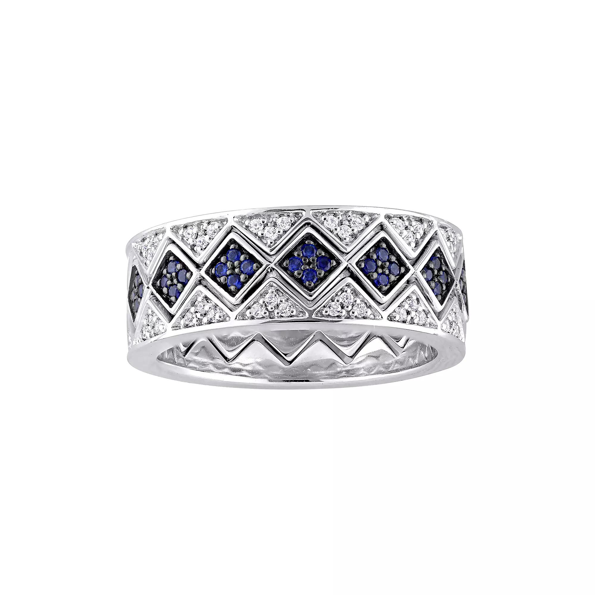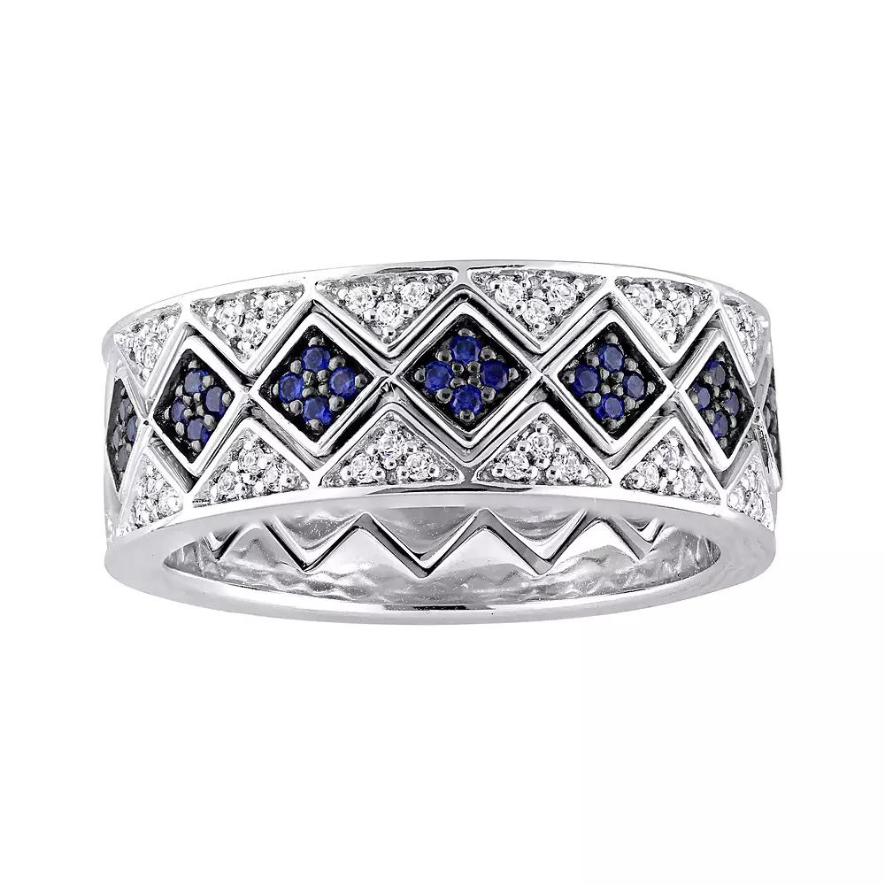 Worn together or separately, this lab-created blue and white sapphire stack ring set abounds with sophisticated style. Worn together or separately, this lab-created blue and white sapphire stack ring set abounds with sophisticated style. RING DETAILS Includes: 3 rings Total width: 7.3 mm Metal: sterling silver Packaging: boxed STONE DETAILS Stone type: lab-created blue sapphire, lab-created white sapphire Total weight: 1 3/8 ct. Shape: round Gemstones may have been treated to enhance their appearance. Special care may be required. Size: 5. Gender: female. Age Group: adult.