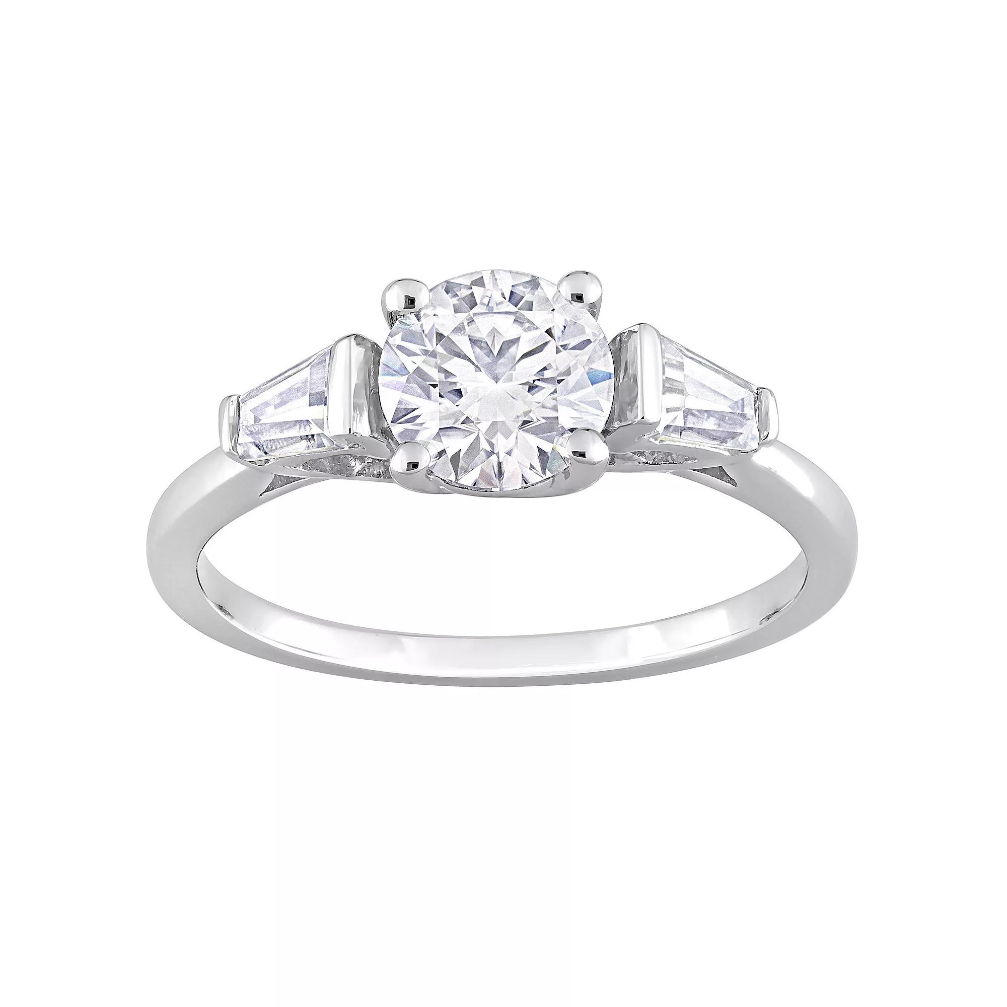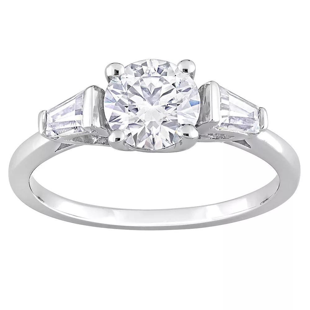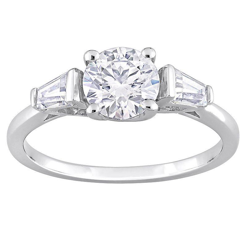 Make heads turn with this stunning Stella Grace Lab-Created Moissanite 3-stone ring. Click on this JEWELRY & WATCHES GUIDE to learn about fit, styles, materials and more! Make heads turn with this stunning Stella Grace Lab-Created Moissanite 3-stone ring. Click on this JEWELRY & WATCHES GUIDE to learn about fit, styles, materials and more! FEATURES Width: 6.5 mm Shank style: straight Band fit: comfort fit Metal: sterling silver Plating: rhodium Finish: polished Packaging: boxed Nickel freeSTONE DETAILS Stone type: lab-created moissanite Total weight: 1 1/5 ct. Center stone weight: 9/10 ct. Center stone size: 6.5 mm x 6.5 mm Shape: round, taper Setting: prong, channel Gemstones may have been treated to enhance their appearance. Special care may be required. Please visit our Gemstone Treatment & Special Care Guide for more information. Image(s) may be enlarged to show detail. Color: White. Gender: female. Age Group: adult.