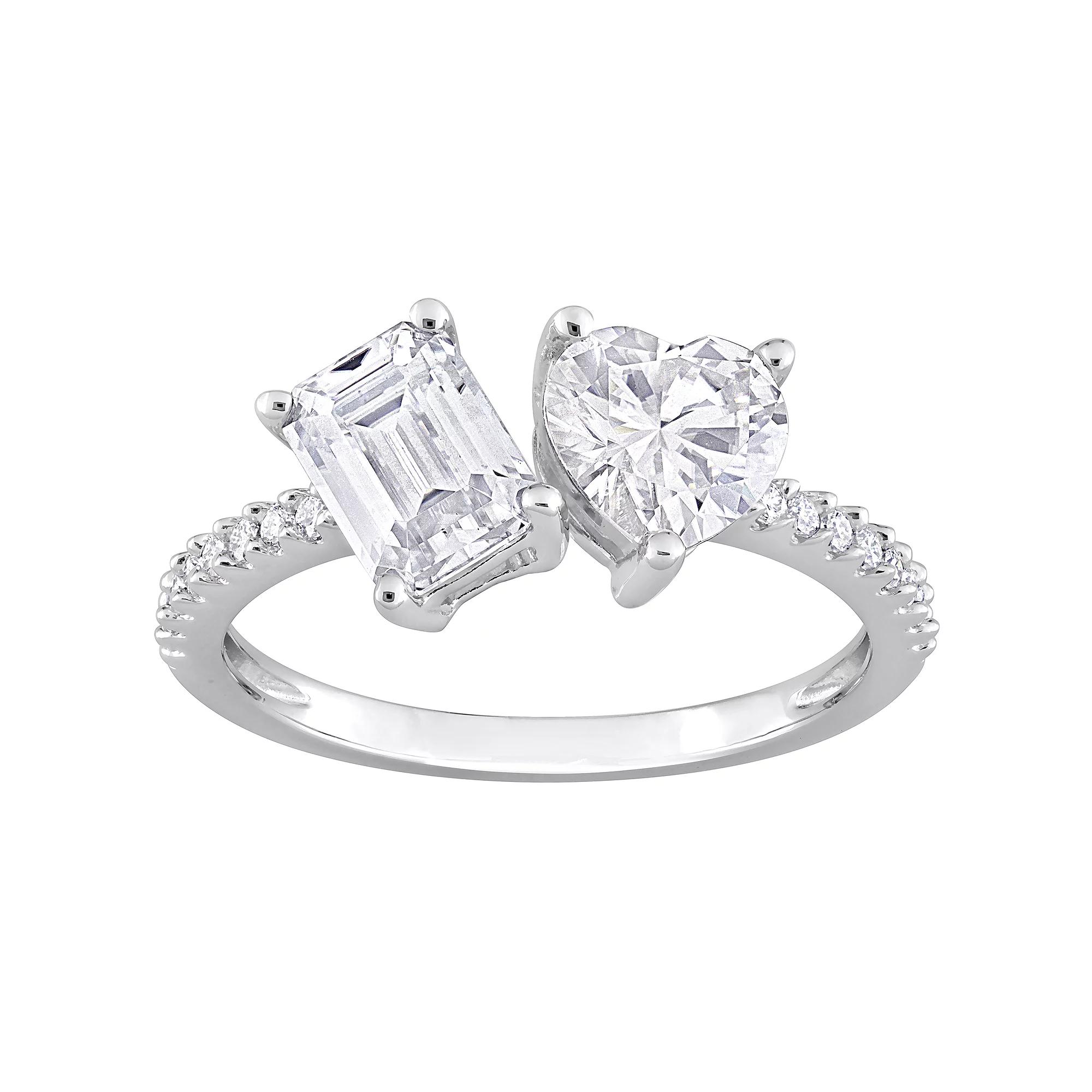 Charm yourself with this unique Lab-Created Moissanite octagon heart two stone ring by Stella Grace. Click on this JEWELRY & WATCHES GUIDE to learn about fit, styles, materials and more! Charm yourself with this unique Lab-Created Moissanite octagon heart two stone ring by Stella Grace. Click on this JEWELRY & WATCHES GUIDE to learn about fit, styles, materials and more! FEATURES Width: 8.6 mm Shank style: anniversary Band fit: comfort fit Metal: sterling silver Plating: rhodium Finish: polished Packaging: boxed Nickel freeSTONE DETAILS Stone type: lab-created moissanite Total weight: 2 1/8 ct. Shape: heart, octagon, round Setting: pave,Setting: prong Gemstones may have been treated to enhance their appearance. Special care may be required. Please visit our Gemstone Treatment & Special Care Guide for more information. Image(s) may be enlarged to show detail. Size: 7. Color: White. Gender: female. Age Group: adult.