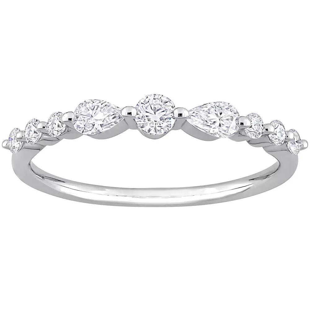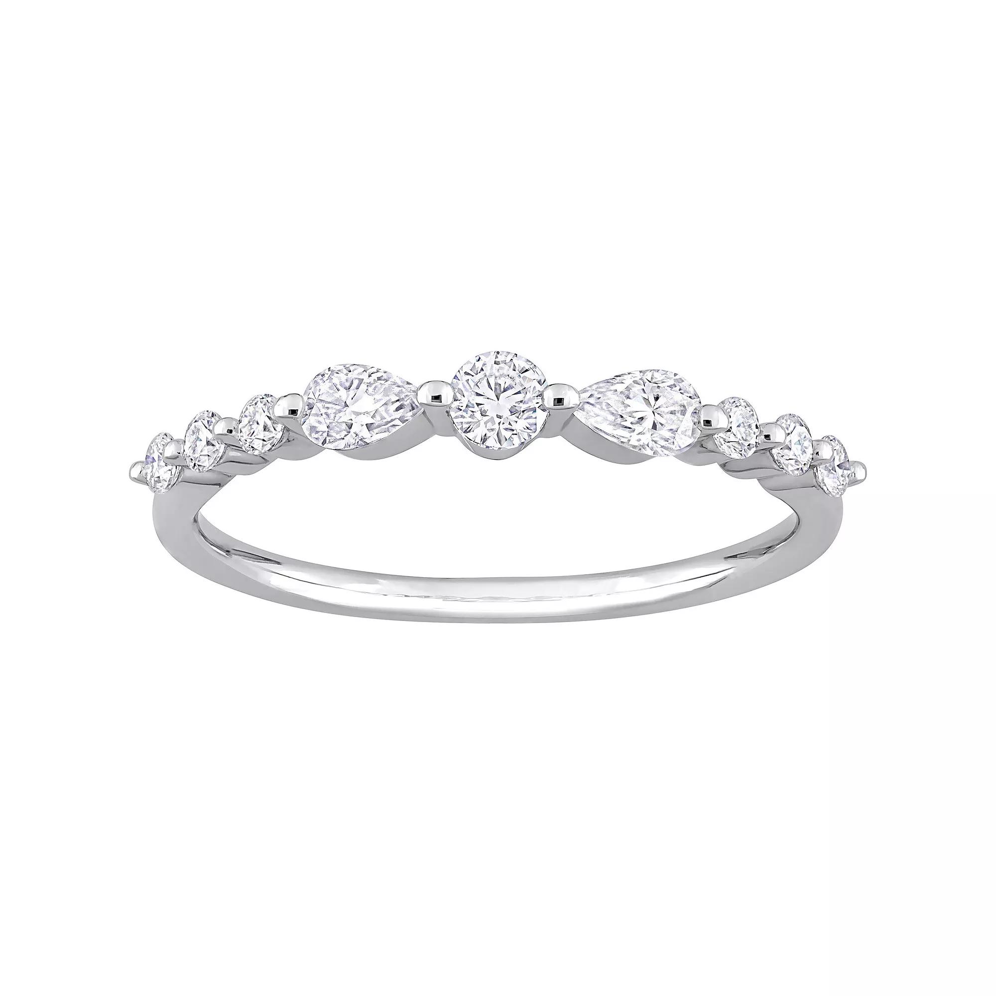 You will love the dazzling design of this Lab-Created Moissanite semi-eternity ring by Stella Grace. Click on this JEWELRY & WATCHES GUIDE to learn about fit, styles, materials and more! You will love the dazzling design of this Lab-Created Moissanite semi-eternity ring by Stella Grace. Click on this JEWELRY & WATCHES GUIDE to learn about fit, styles, materials and more! FEATURES Width: 3 mm Shank style: straight Band fit: comfort fit Metal: sterling silver Plating: rhodium Finish: polished Packaging: boxed Nickel freeSTONE DETAILS Stone type: lab-created moissanite Total weight: 1/2 ct. Shape: pear, round Setting: shared prong Gemstones may have been treated to enhance their appearance. Special care may be required. Please visit our Gemstone Treatment & Special Care Guide for more information. Image(s) may be enlarged to show detail. Size: 6. Color: White. Gender: female. Age Group: adult.