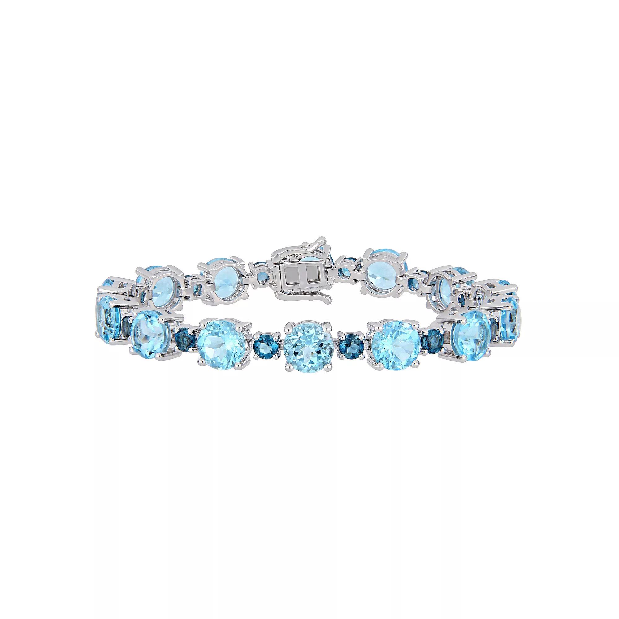 Finish off your look with a touch of elegance in this sterling silver Stella Grace London and sky blue topaz bracelet. Click on this JEWELRY & WATCHES GUIDE to learn about fit, styles, materials and more! Finish off your look with a touch of elegance in this sterling silver Stella Grace London and sky blue topaz bracelet. Click on this JEWELRY & WATCHES GUIDE to learn about fit, styles, materials and more! FEATURES Length: 7.25 in. Clasp: box Nickel free Metal: sterling silver Plating: rhodium Finish: polished Packaging: boxed ImportedSTONE DETAILS Stone type: London blue topaz, sky blue topaz Total weight: 37 1/10 ct. Shape: round Setting: prong Gemstones may have been treated to enhance their appearance. Special care may be required. Please visit our Gemstone Treatment & Special Care Guide for more information. Please note, due to the high value of this item, a signature may be required upon delivery. Size: 7.25". Gender: female. Age Group: adult.