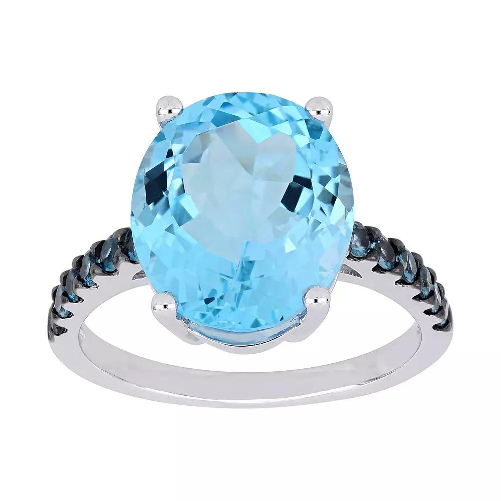 Add a vibrant pop of color to your look with this Stella Grace blue topaz ring. Add a vibrant pop of color to your look with this Stella Grace blue topaz ring. RING DETAILS Width: 14.3 mm Metal: sterling silver Packaging: boxed STONE DETAILS Stone type: blue topaz, London blue topaz Center stone carat weight: 9.9 ct. Shape: ova, round Setting: prong Gemstones may have been treated to enhance their appearance. Special care may be required. Size: 7. Gender: female. Age Group: adult.