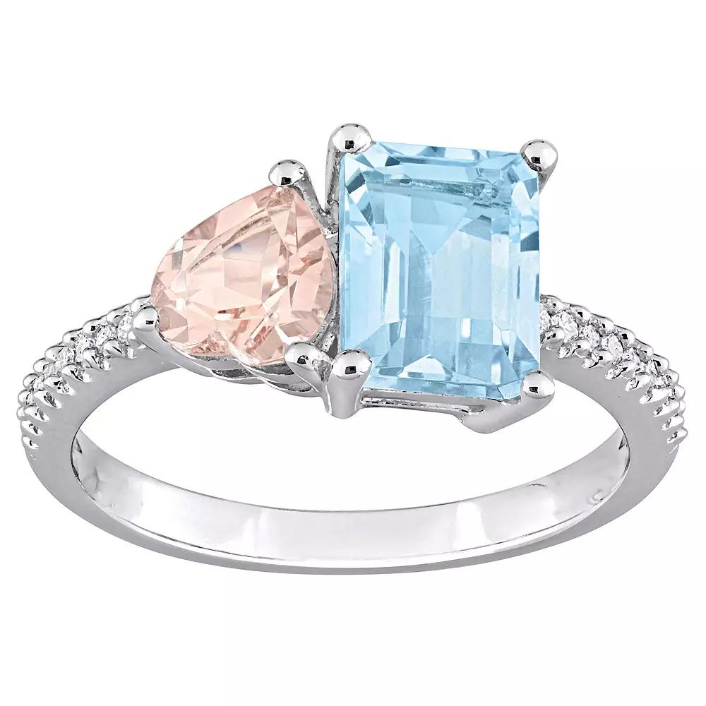 Accessorize your look with this beautiful ring from Stella Grace. Click on this JEWELRY & WATCHES GUIDE to learn about fit, styles, materials and more! Accessorize your look with this beautiful ring from Stella Grace. Click on this JEWELRY & WATCHES GUIDE to learn about fit, styles, materials and more! FEATURES Width: 8.8 mm Shank style: cathedral Band fit: concave Nickel free Metal: sterling silver Plating: rhodium Finish: polished Packaging: boxedSTONE DETAILS Stone type: sky blue topaz, morganite Total weight: 2 5/8 ct. Shape: heart, octagon Setting: prongDIAMOND DETAILS Total weight: 1/10 ct. Diamond Color Grade: I3 Diamond Clarity Grade: H,I,J Shape: round Setting: shared prong Diamond weights are approximate. Diamond Total Weights may vary between .01 and .13 ct. Some diamonds consist of fewer than 17 facets. Gemstones may have been treated to enhance their appearance. Special care may be required. Please visit our Gemstone Treatment & Special Care Guide for more information. Image(s) may be enlarged to show detail. Color: Multicolor. Gender: female. Age Group: adult.