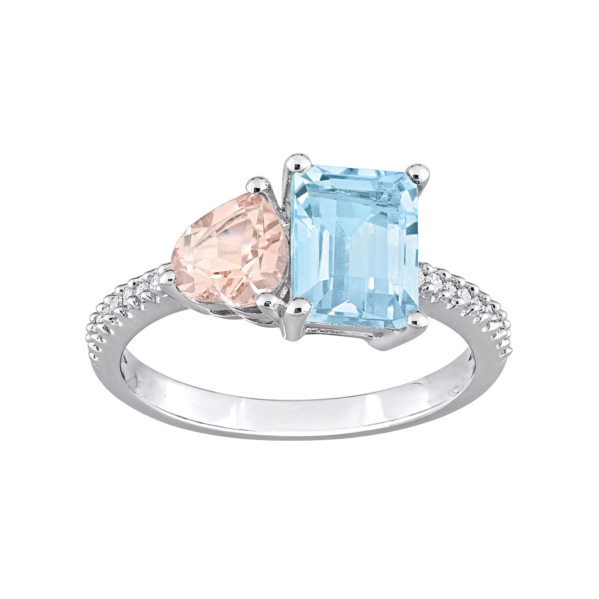 Stella Grace Sterling Silver Sky Blue Topaz, Morganite & 1/10 Carat T.W Diamond Toi & Moi Ring, Women's,  Product Image