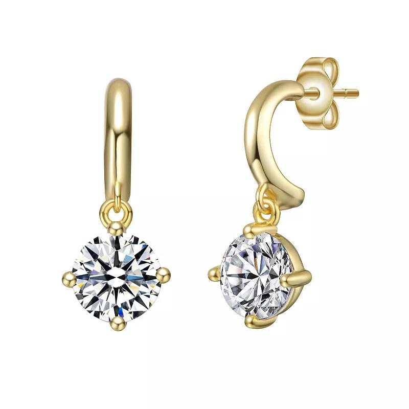 Accessorize in style with these Stella Valentino 14k gold over sterling silver lab-created Moissanite solitaire c-hoop dangle earrings. Click on this JEWELRY & WATCHES GUIDE to learn about fit, styles, materials and more! Accessorize in style with these Stella Valentino 14k gold over sterling silver lab-created Moissanite solitaire c-hoop dangle earrings. Click on this JEWELRY & WATCHES GUIDE to learn about fit, styles, materials and more! FEATURES Dimensions: 7.3 mm x 17 mm Backings: post Metal: sterling silver Plating: 14k gold Finish: polished Packaging: velvety pouchSTONE DETAILS Stone type: lab-created moissanite Total weight: 1 1/2 ct. Shape: round Setting: prong Gemstones may have been treated to enhance their appearance. Special care may be required. Please visit our Gemstone Treatment & Special Care Guide for more information. Size: One Size. Color: White. Gender: female. Age Group: adult.