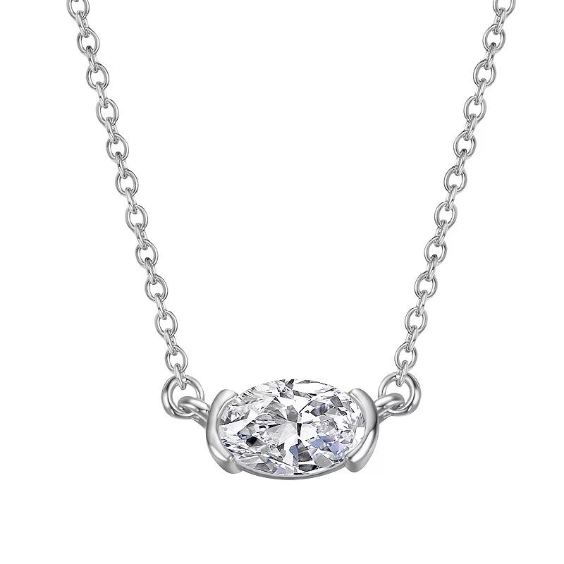 Complete your elegant ensemble with this charming Stella Valentino lab created moissanite east-west oval solitaire necklace. Click on this JEWELRY & WATCHES GUIDE to learn about fit, styles, materials and more! Complete your elegant ensemble with this charming Stella Valentino lab created moissanite east-west oval solitaire necklace. Click on this JEWELRY & WATCHES GUIDE to learn about fit, styles, materials and more! FEATURES Drop length: 0.19 x 0.31 Chain length: 16 in. + 2-in. extender Chain type: cable Clasp: lobster-claw Metal: sterling silver Plating: rhodium Finish: polished Packaging: dust bagSTONE DETAILS Stone type: lab-created moissanite Total weight: 3/4 ct. Center stone size: 5 mm x 7 mm Shape: oval Setting: bezel Gemstones may have been treated to enhance their appearance. Special care may be required. Please visit our Gemstone Treatment & Special Care Guide for more information. Size: 16-18 ADJ. Color: White. Gender: female. Age Group: adult.