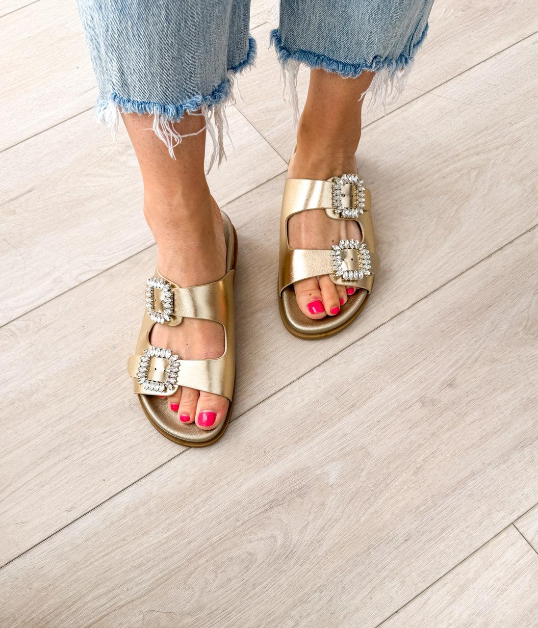 Stellar Rhinestone Buckle Slides in Gold (Online Exclusive)