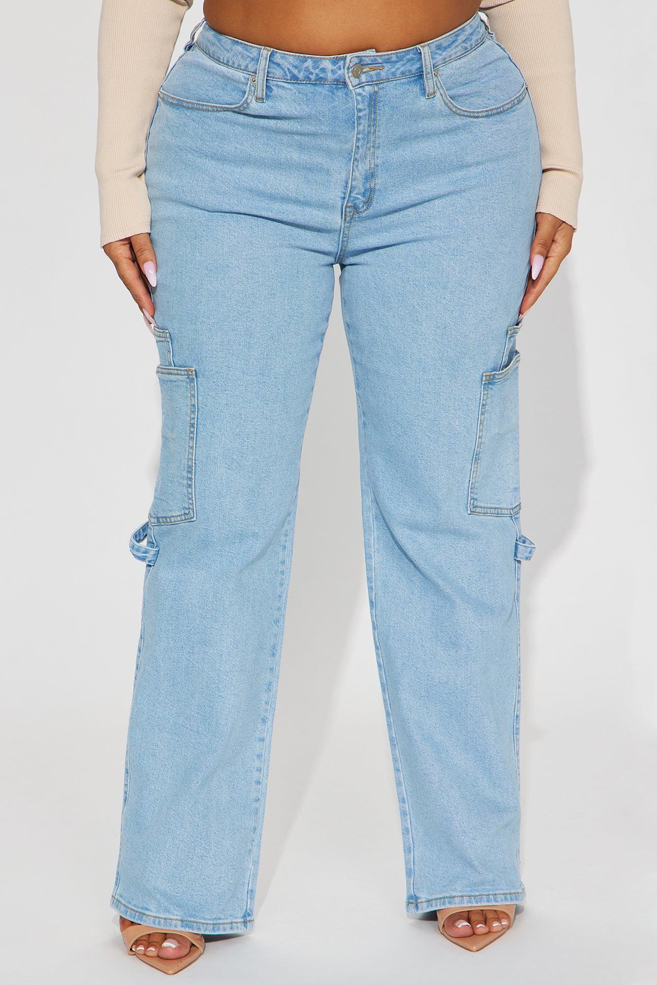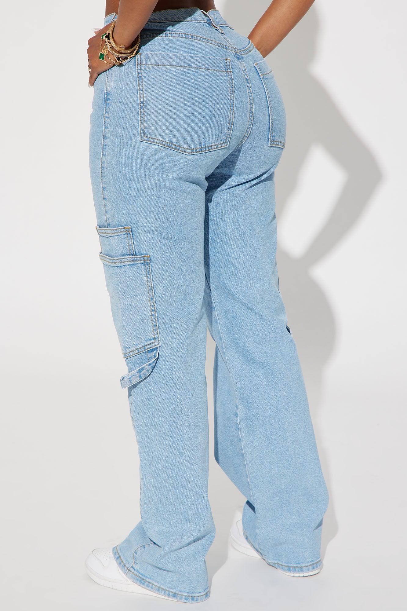 Step By Step Utility Straight Leg Jeans - Light Wash