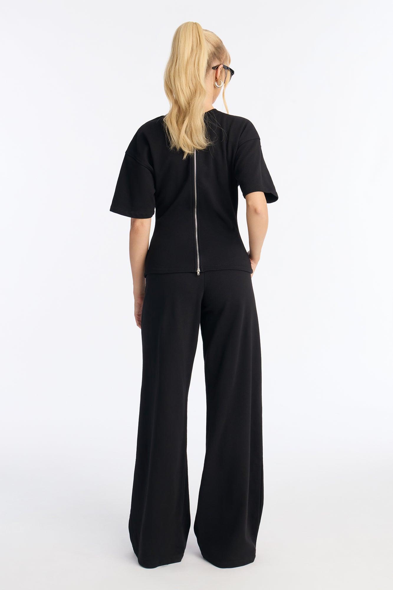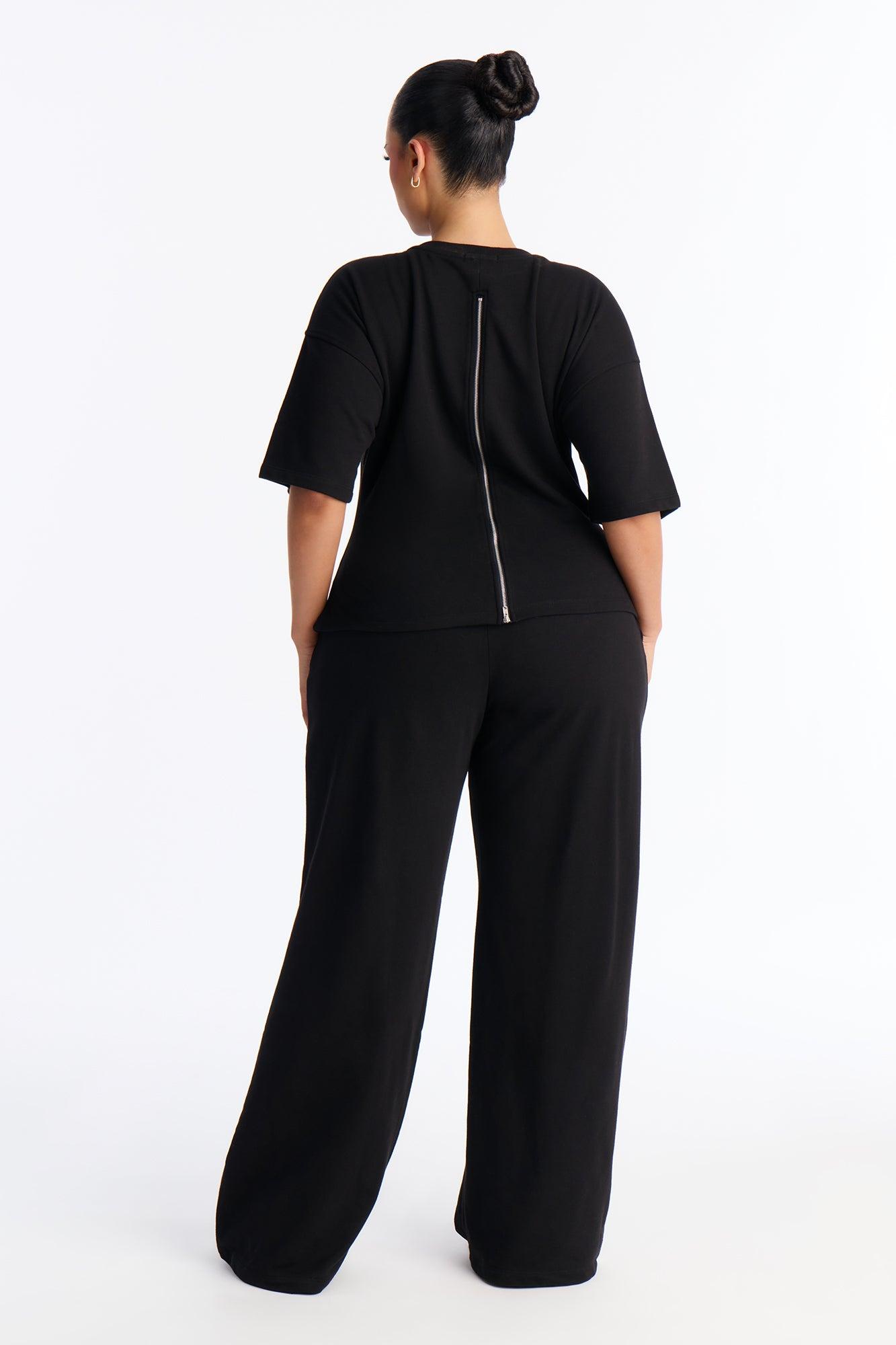 Stephanie Fitted Tee Wide Leg Pant Set - Black Female