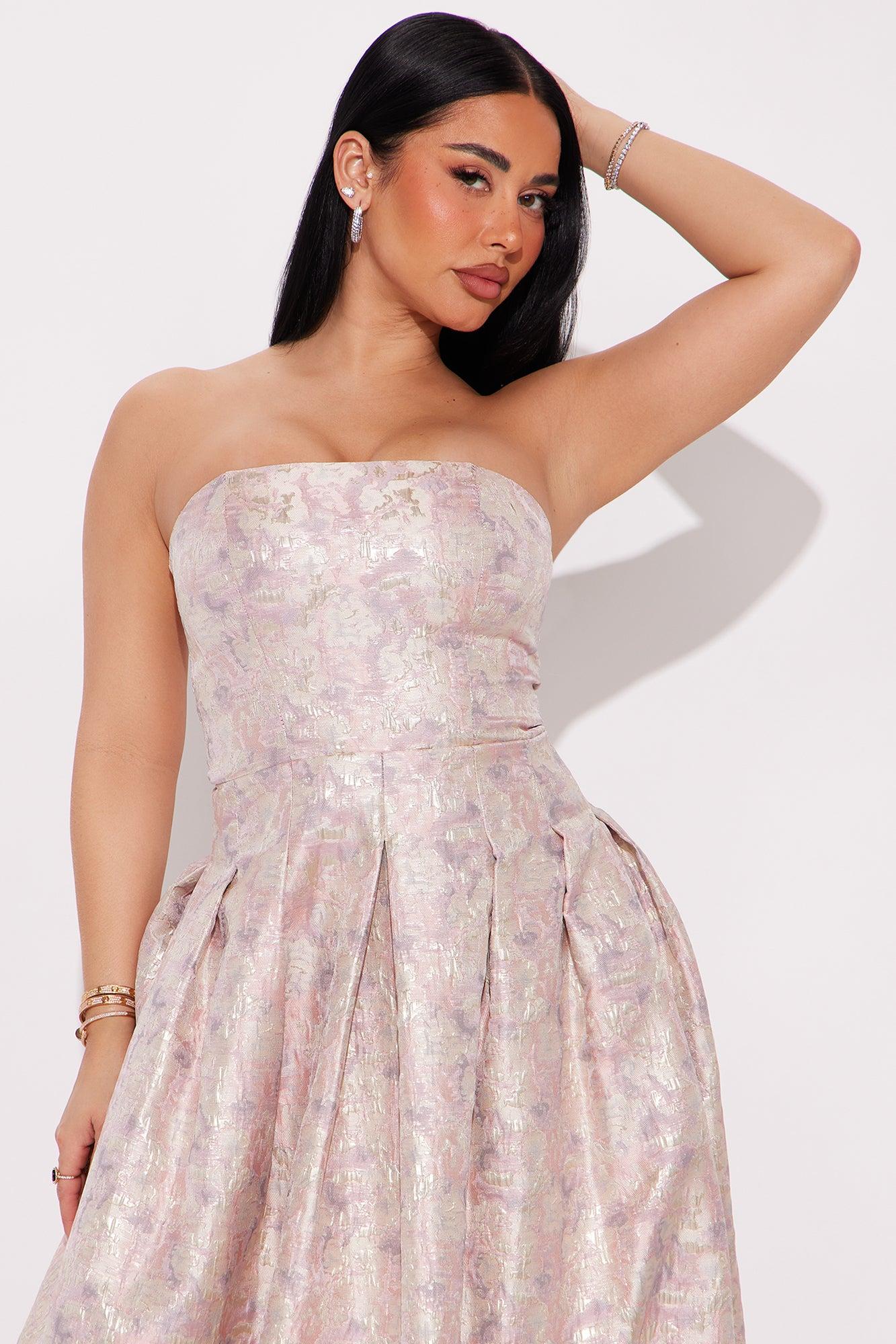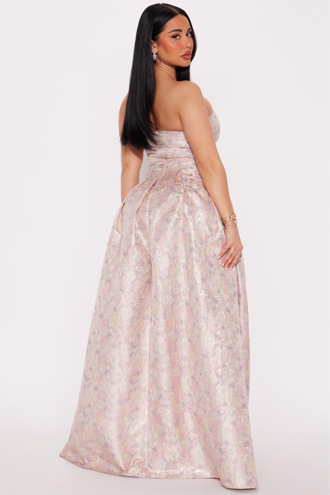 Available In Mauve/combo. Jacquard Gown Strapless Pleated Skirt Hidden Back Zipper Lined No Stretch Disclaimer: Design Color Placement Will Vary Self / Lining 100% Polyester Imported