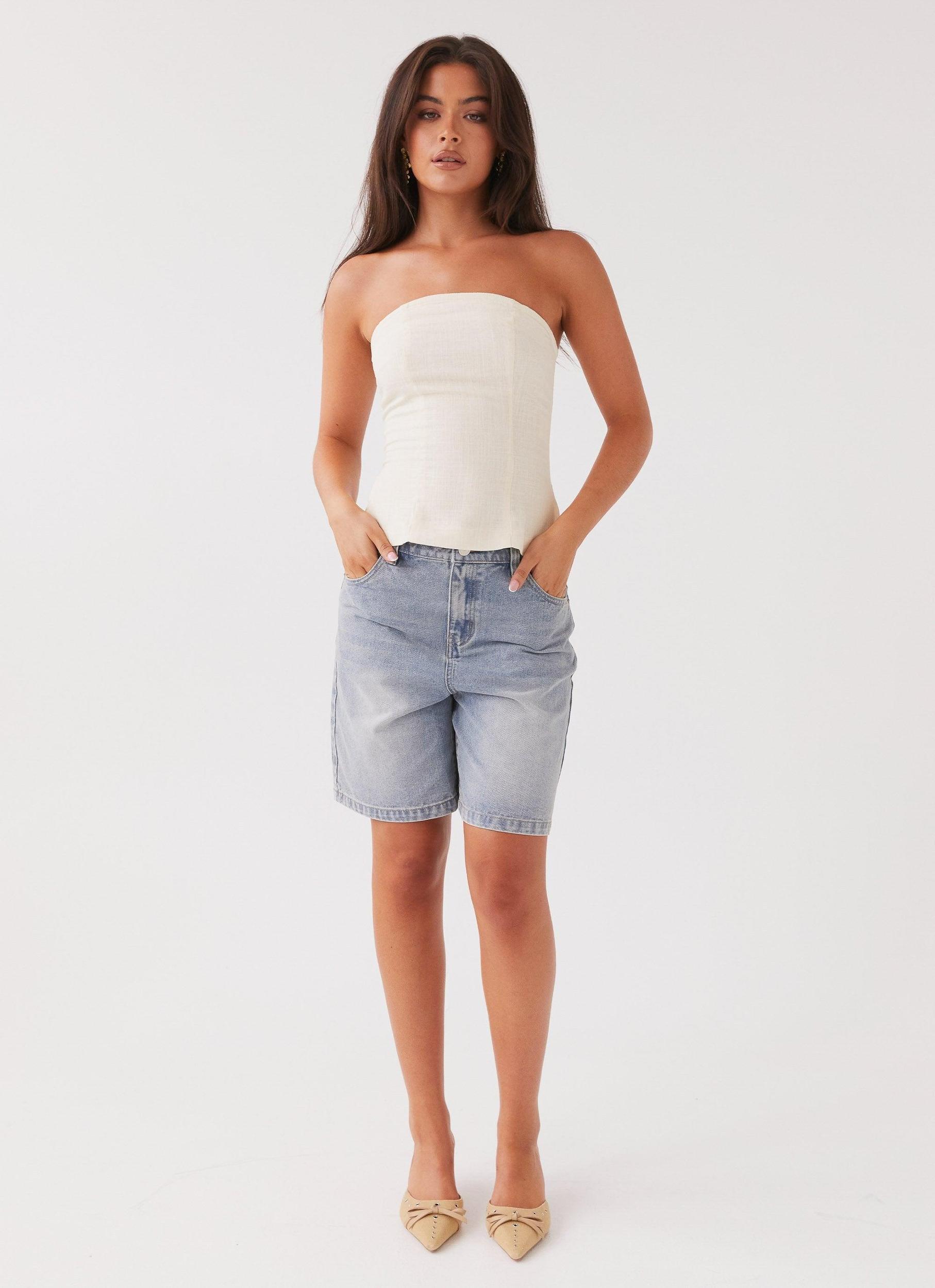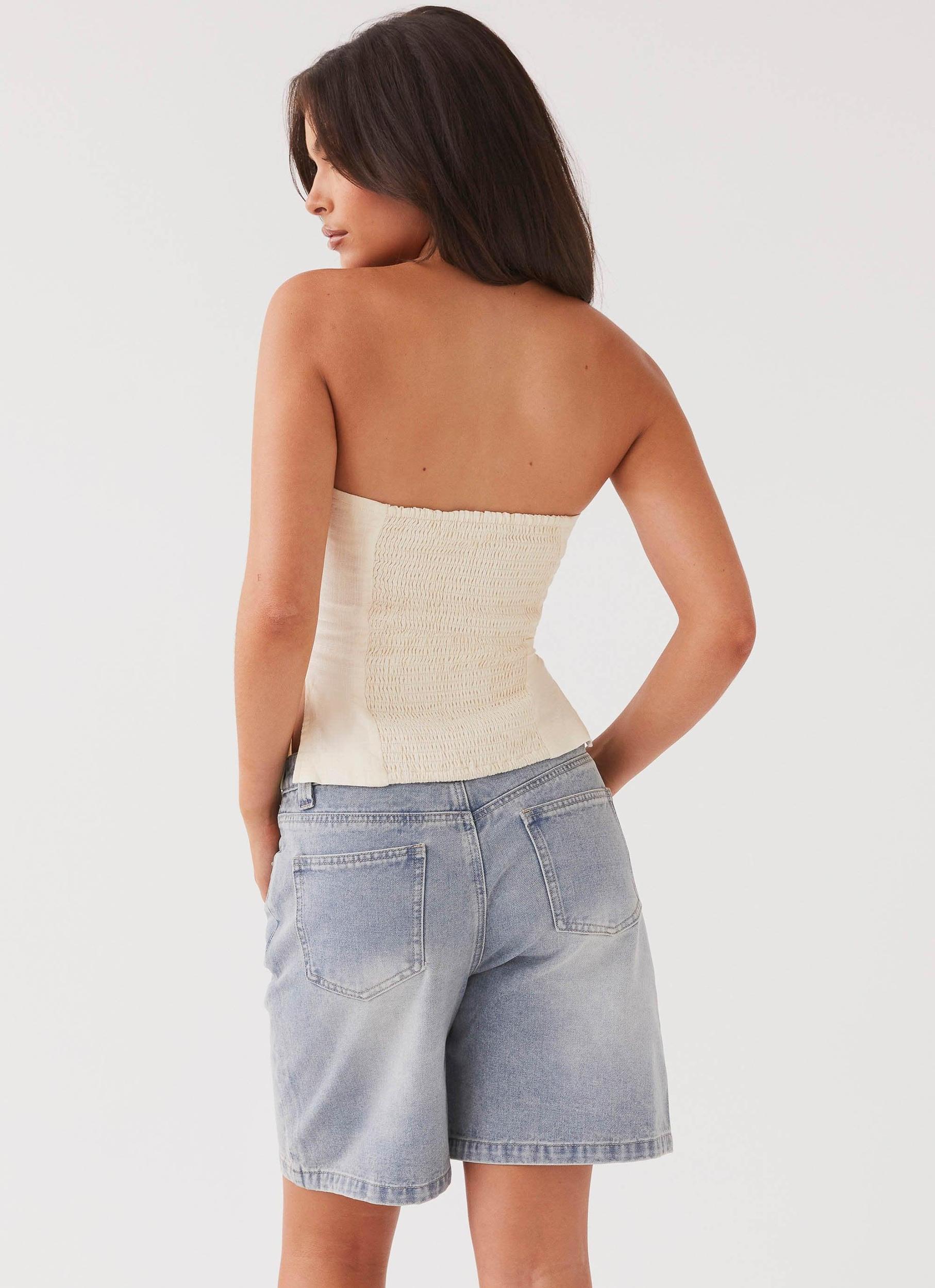 Peppermayo Exclusive Unveil the epitome of effortless summer style with the Stephanie Linen Tube Top. Crafted from a linen fabric, known for its airy feel and timeless charm, this top embodies laid-back luxury from the moment you slip it on. - Tube top- Strapless- Elastic back- No zipper- Lined- Left side split- 45% Linen, 55% Cotton Size AU 8 garment measurements:Waist 68cmLength 40.5cmBust 76cm Olivia wears size US 2 (X-Small or AU 6 equivalent)