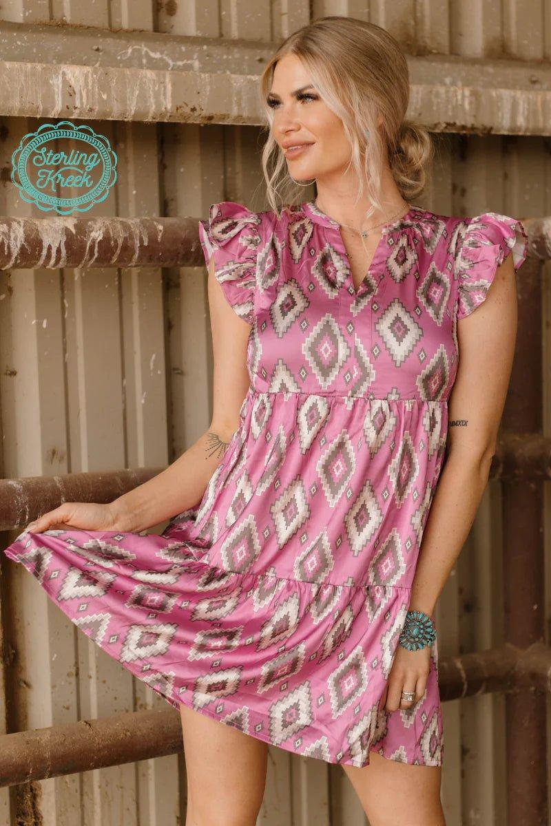 Sterling Kreek Needed Me Pink Dress / GussiedupOnlineGet ready to turn heads in this Needed Me Dress in pink! With a fun Aztec design in grey and white, you...