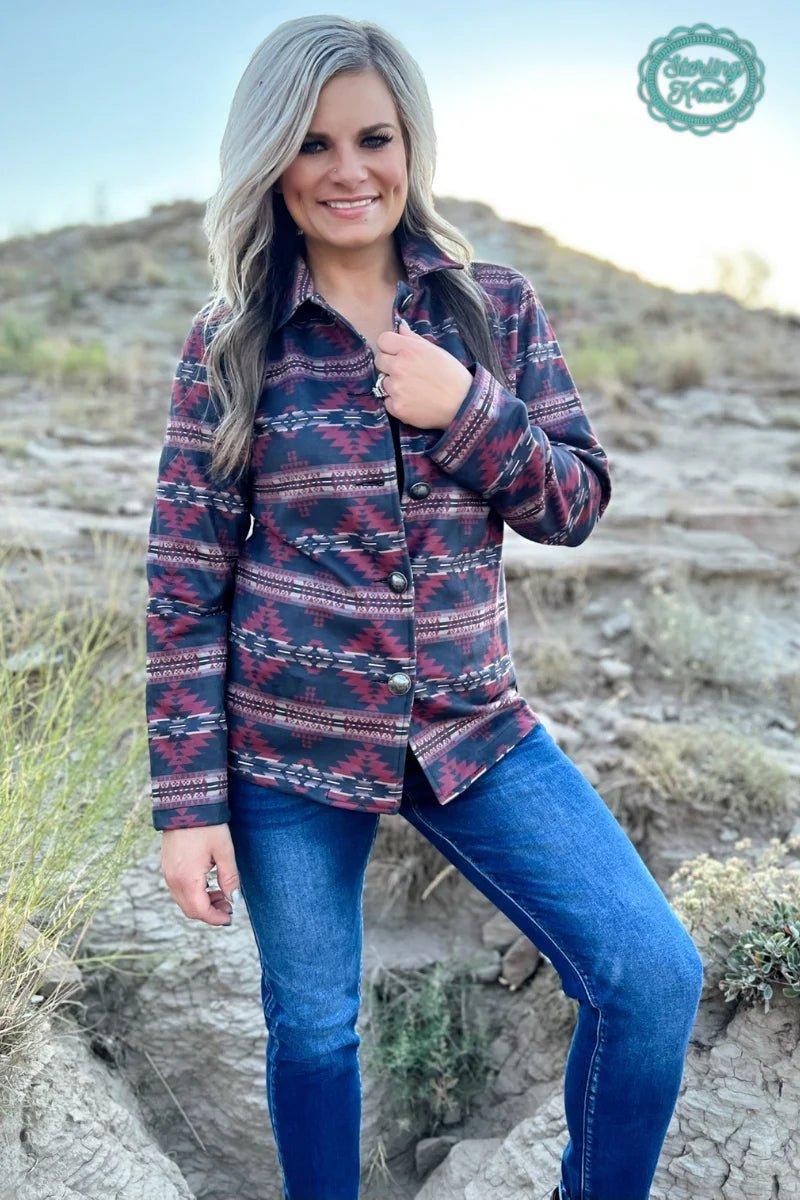 Sterling Kreek Rebel Like Reba Jacket I Gussied Up Online Unleash your rebellious side with our Rebel Like Reba Jacket! Featuring a bold red and black Aztec print, this jacket will make you stand out from the crowd. The statement buffalo buttons add a touch of edginess to this stylish piece. Make a statement and turn heads with this rebellious jacket. 90% Polyester, 10% Spandex SIZE CHEST LENGTH SLEEVE WIDTH SLEEVE LENGTH XS 18" 26.5" 6.5" 23" S 18.25" 26.5" 6.5" 23.5" M 19" 26.5" 7" 24" L 21" 27" 7.5" 24.5" XL 22" 27.5" 8" 24.5" 2X 24" 28" 8" 25" 3X 24.5" 29" 8" 25"