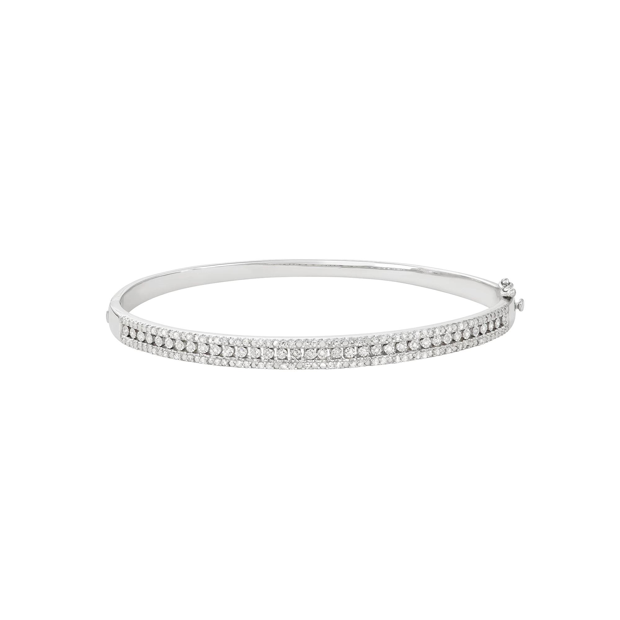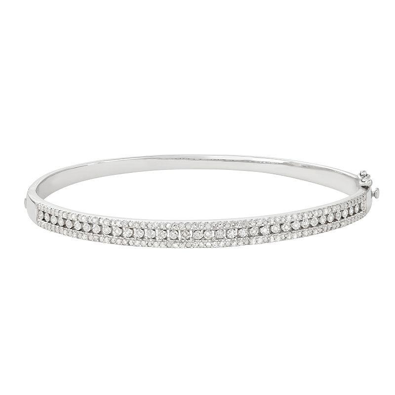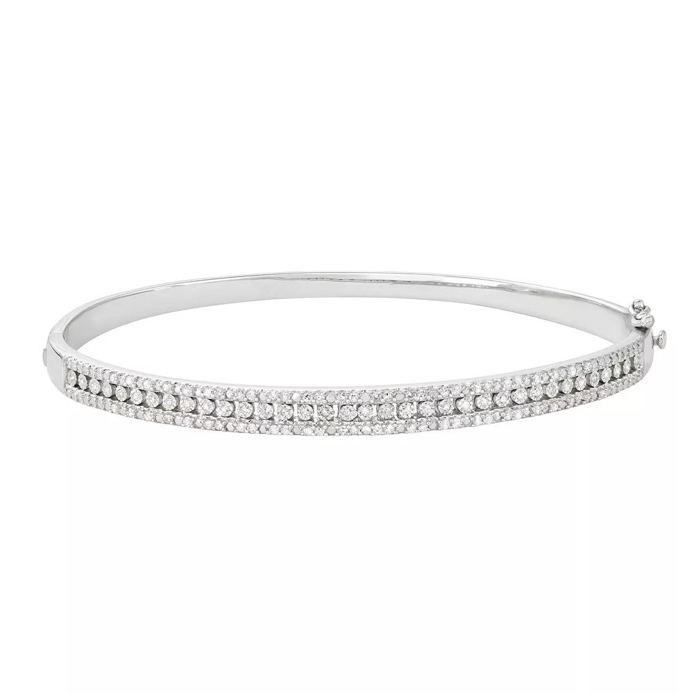 This gorgeous sterling silver diamond bangle bracelet is the perfect way to finish any outfit. This gorgeous sterling silver diamond bangle bracelet is the perfect way to finish any outfit. Length: 7 in. Metal: sterling silver Plating: rhodium Finish: polished Packaging: boxedDIAMOND DETAILS Total weight: 1/2 ct. Shape: round Setting: prong Diamond weights are approximate. Diamond total weights may vary between .01 and .08 ct. Some diamonds have fewer than 17 facets. Gemstones may have been treated to enhance their appearance. Special care may be required. Please visit our Gemstone Treatment & Special Care Guide for more information. Image(s) may be enlarged to show detail. Please note, due to the high value of this item, a signature may be required upon delivery. Size: 7.5. Color: White. Gender: female. Age Group: adult.