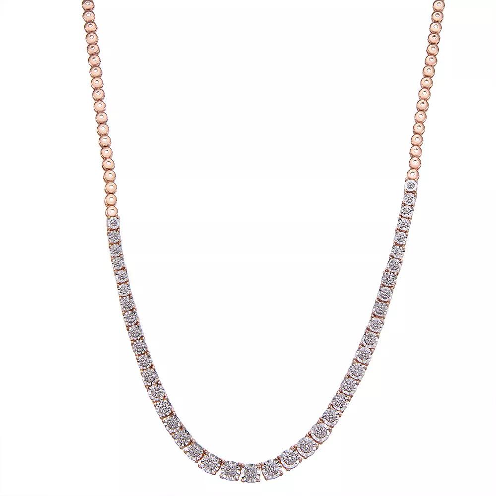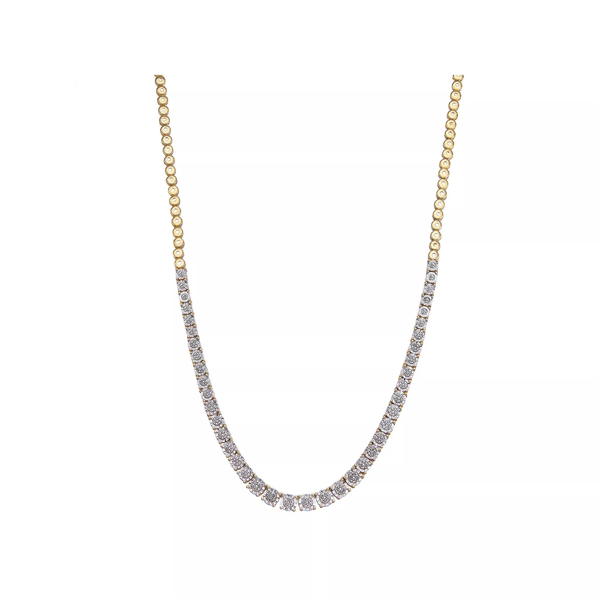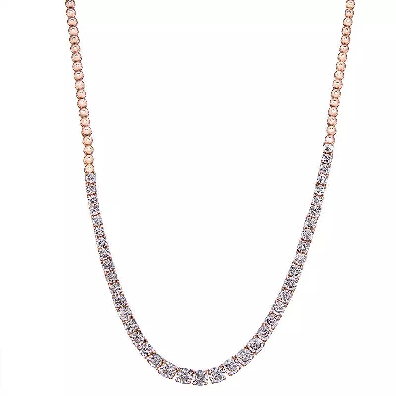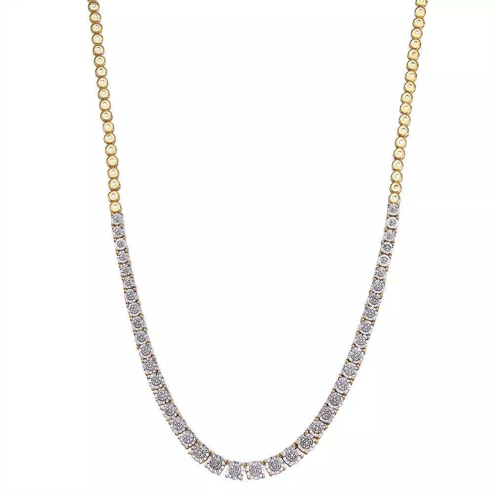 Lined with round-cut diamonds, this scintillating necklace completes your look beautifully. 18 length Metal: sterling silver Finish: polished Packaging: boxedDIAMOND DETAILS Total weight: 1/3 ct. Color grade: I-J Shape: round Setting: micro prong Diamond weights are approximate. Diamond total weights may vary between .01 and .08 ct. Some diamonds have fewer than 17 facets. Gemstones may have been treated to enhance their appearance. Special care may be required. Please visit our Gemstone Treatment & Special Care Guide for more information. Image(s) may be enlarged to show detail. Please note, due to the high value of this item, a signature may be required upon delivery. Color: White. Gender: female. Age Group: adult. Material: Gold Over Sterling.