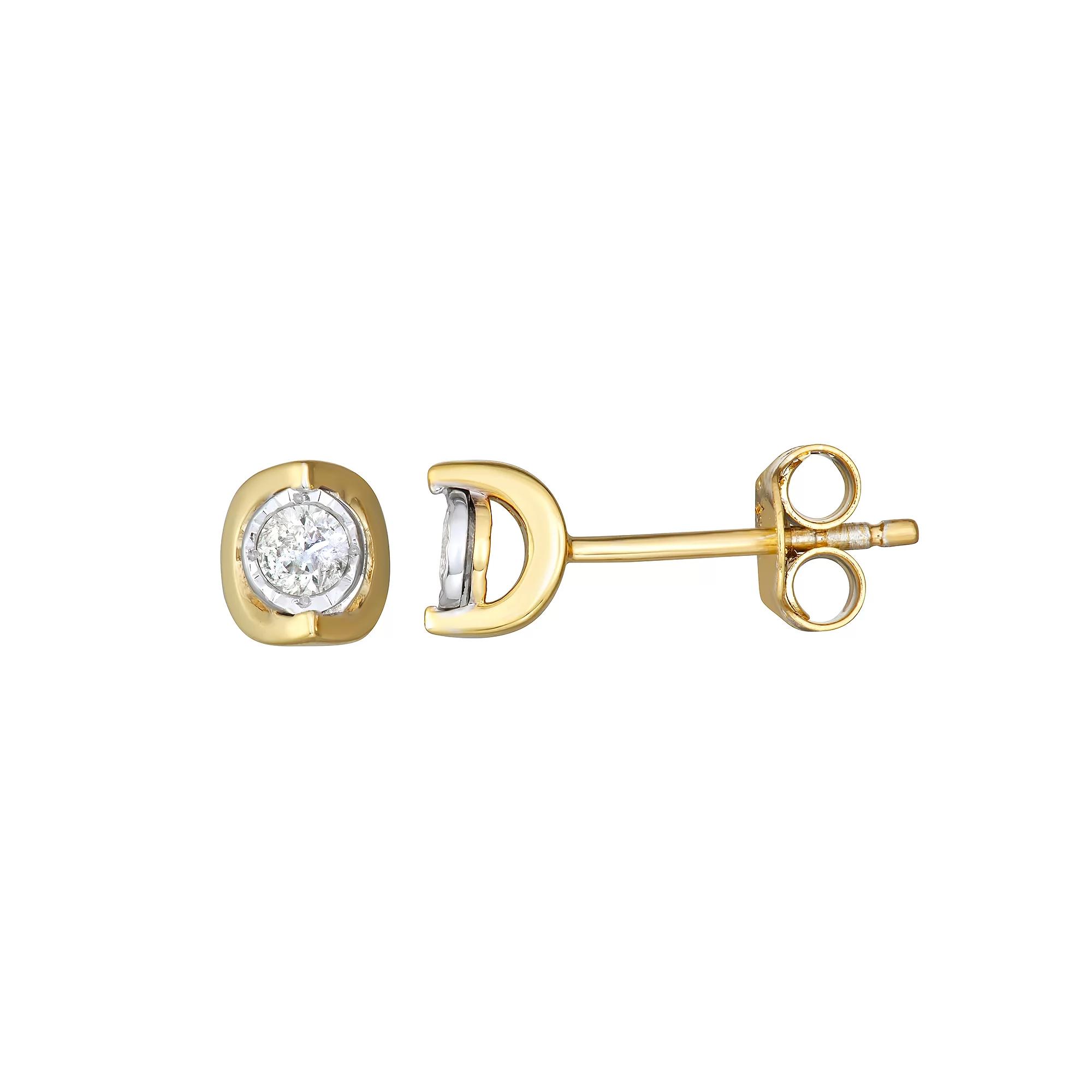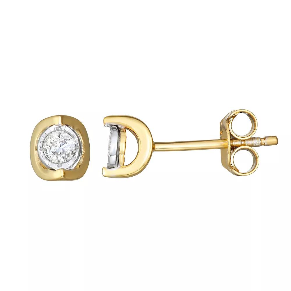 Add a unique touch to your outfits with these diamond bezel stud earrings. Click on this JEWELRY & WATCHES GUIDE to learn about fit, styles, materials and more! Click on this JEWELRY & WATCHES GUIDE to learn about fit, styles, materials and more! Backings: post Metal: sterling silver Finish: polished Packaging: boxedDIAMOND DETAILS Total weight: 1/5 ct. Shape: round Clarity: I3 Color grade: I-J Setting: illusion Gemstones may have been treated to enhance their appearance. Special care may be required. Please visit our Gemstone Treatment & Special Care Guide for more information. Please note, due to the high value of this item, a signature may be required upon delivery. Size: One Size. Color: White. Gender: female. Age Group: adult. Material: Gold Over Sterling.