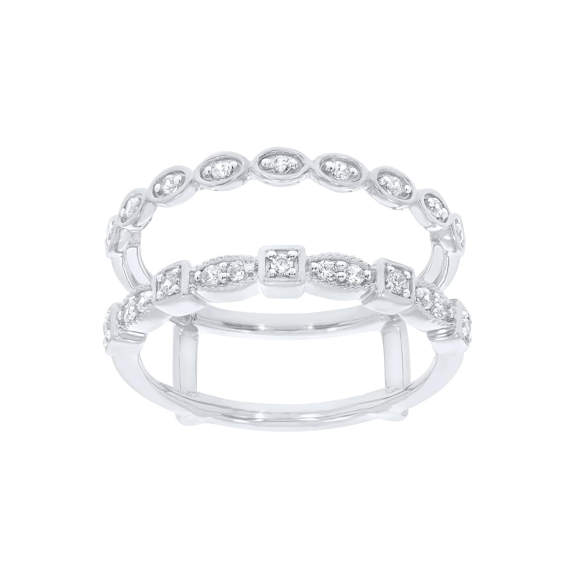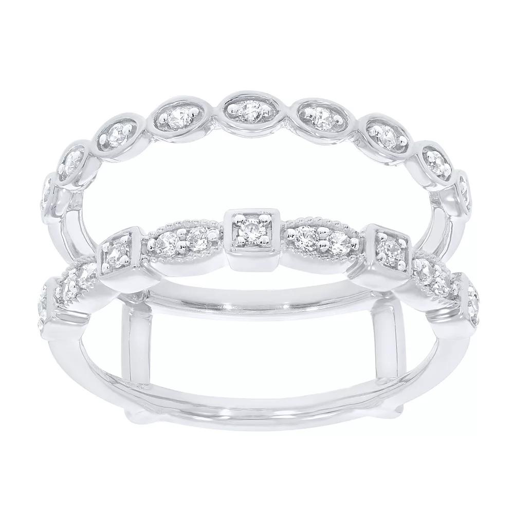 Lined with dazzling round-cut diamonds, this sterling silver enhancer ring beautifully complements and protects your favorite ring. Lined with dazzling round-cut diamonds, this sterling silver enhancer ring beautifully complements and protects your favorite ring.Click on this JEWELRY & WATCHES GUIDE to learn about fit, styles, materials and more! Width: 0.07 in. Metal: sterling silver Plating: 14k gold Finish: polished Packaging: boxedDIAMOND DETAILS Total weight: 1/5 ct. Shape: round Setting: pave Diamond weights are approximate. Diamond total weights may vary between .01 and .08 ct. Some diamonds have fewer than 17 facets. Gemstones may have been treated to enhance their appearance. Special care may be required. Please visit our Gemstone Treatment & Special Care Guide for more information. Image(s) may be enlarged to show detail. Please note, due to the high value of this item, a signature may be required upon delivery. Color: White. Gender: female. Age Group: adult.