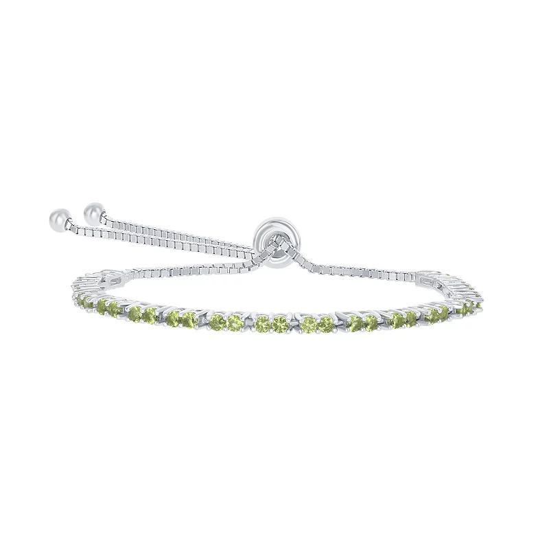 You'll love the impressive design of this beautiful bracelet. You'll love the impressive design of this beautiful bracelet. Clasp: adjustable Packaging: boxed Metal: sterling silver Plating: sterling silver Finish: polished Additional details: nickel free STONE DETAILS Stone type: cubic zirconia Shape: round Setting: prong Size: 8". Color: Green. Gender: female. Age Group: adult.