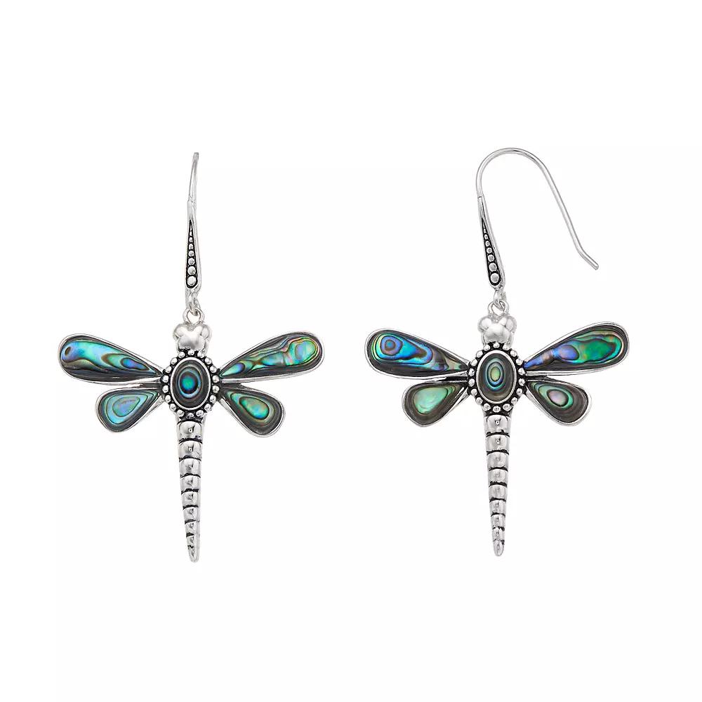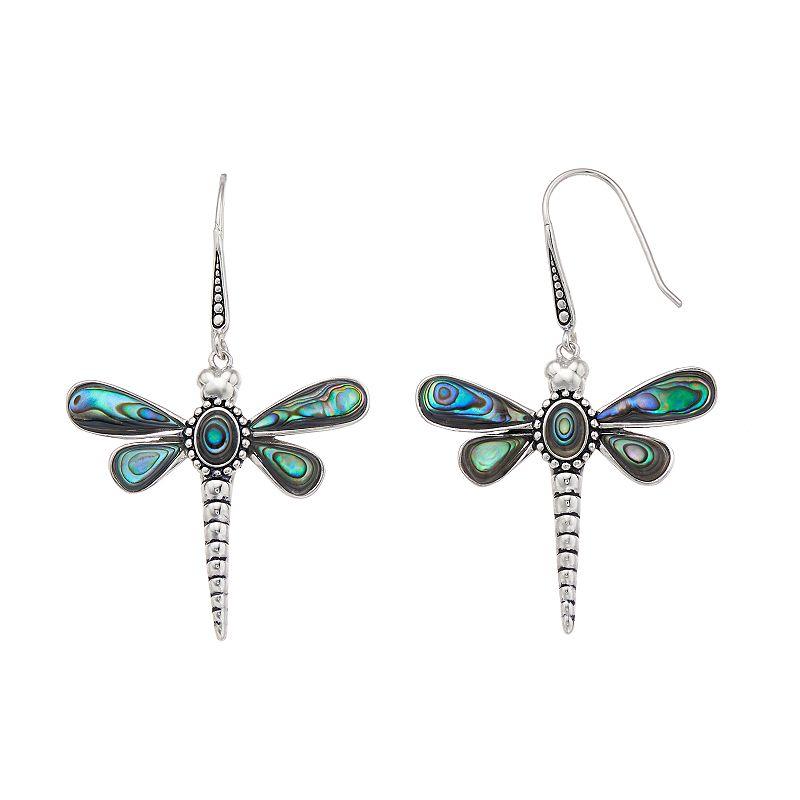 Showcase your soaring sense of style with these captivating abalone dragonfly earrings.EARRING DETAILSLength: 1.89 in. Backings: fishhookMetal: sterling silverPlating: rhodiumGemstones may have been treated to enhance their appearance. Special care may be required. Size: One Size. Color: Multicolor. Gender: female. Age Group: adult.