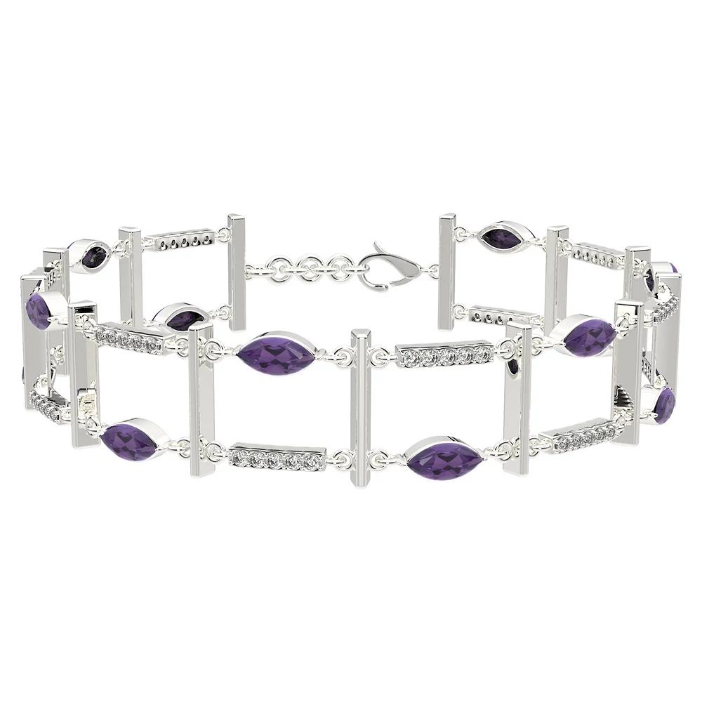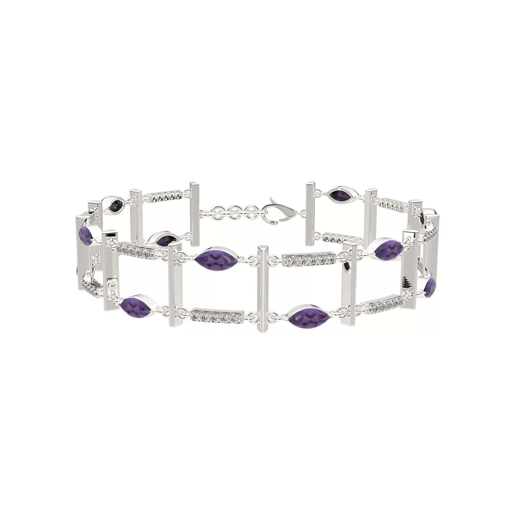 This eye-catching amethyst and white topaz layer bracelet is the perfect complement to your elegant style. This eye-catching amethyst and white topaz layer bracelet is the perfect complement to your elegant style. Metal: sterling silver Length: 7.25 in. Packaging: boxed Plating: rhodium Finish: polishedSTONE DETAILS Stone type: amethyst, white topaz Total weight: 3 1/10 ct. Center stone size: 6 mm x 3 mm Shape: marquise, round Setting: prong Gemstones may have been treated to enhance their appearance. Special care may be required. Please visit our Gemstone Treatment & Special Care Guide for more information. Size: 7.25". Color: Purple. Gender: female. Age Group: adult.
