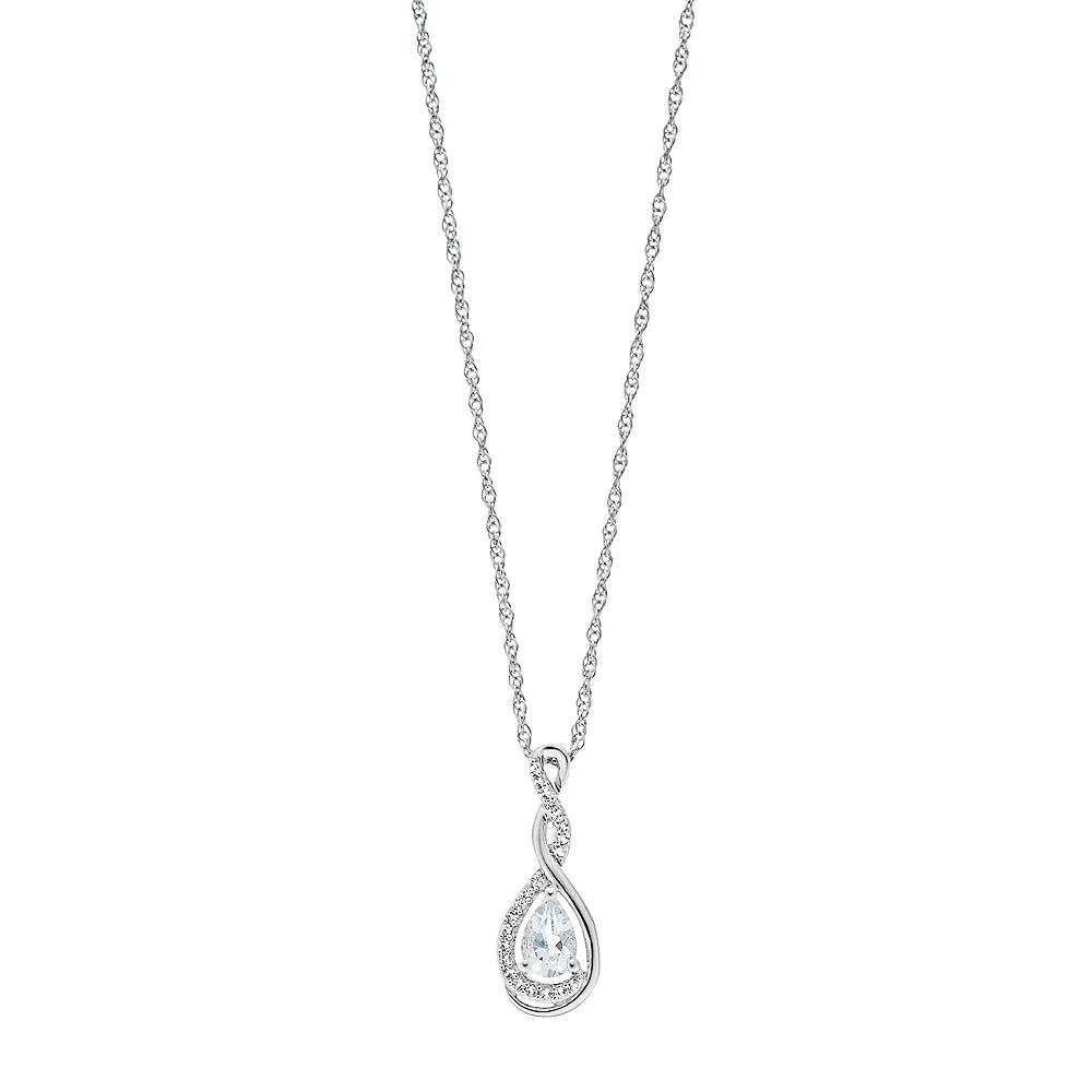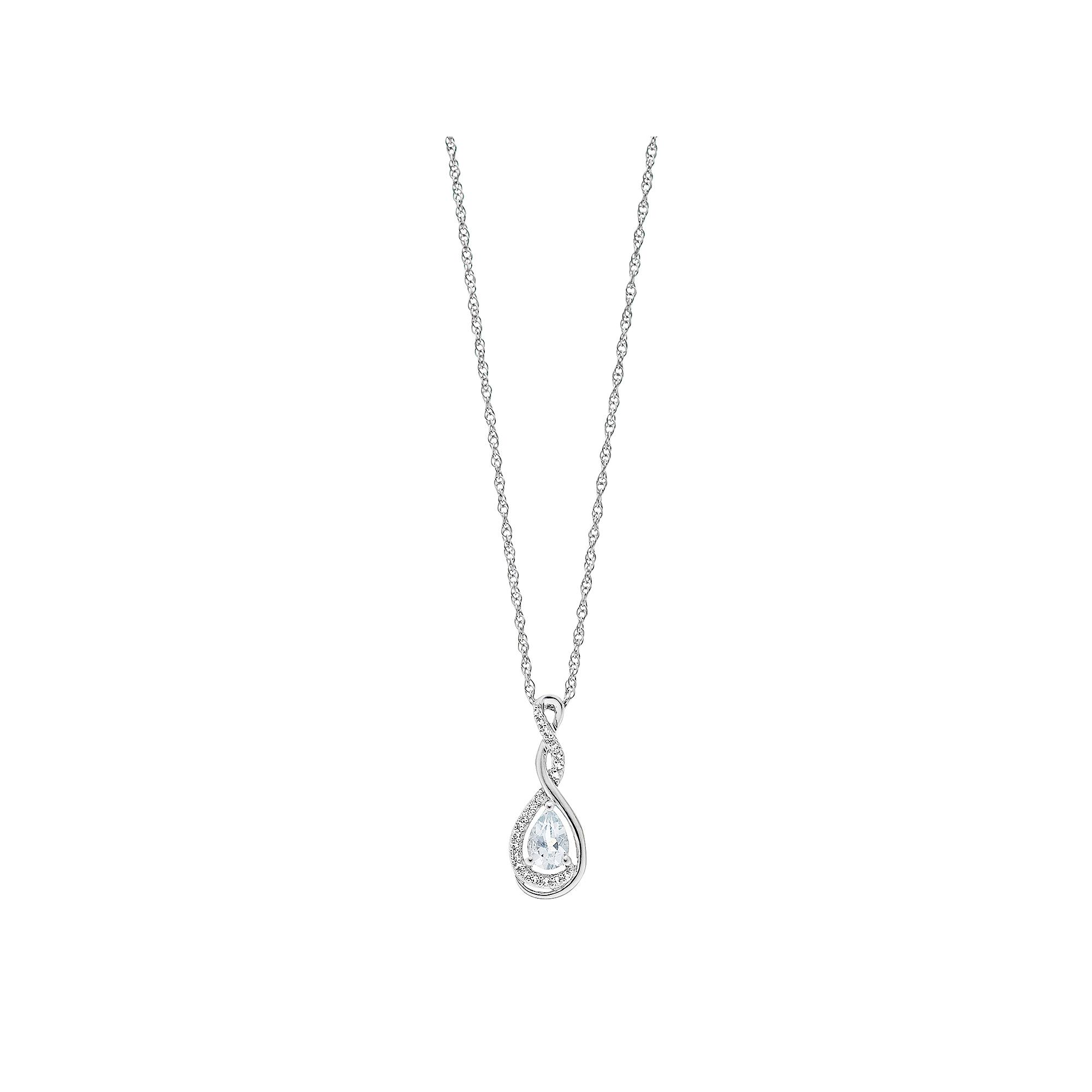 Featuring a sparkling aquamarine center stone and shimmering lab-created white sapphire accents, this sterling silver pendant glows with glamour. Featuring a sparkling aquamarine center stone and shimmering lab-created white sapphire accents, this sterling silver pendant glows with glamour. Pendant size: 0.76L x 0.3W Chain length: 18 in. Chain type: rope Metal: sterling silver Plating: rhodium Finish: polished Packaging: boxedSTONE DETAILS Stone type: aquamarine, lab-created white sapphire Total weight: 3/8 ct. Center stone weight: 1/3 ct. Center stone size: 6 mm x 4 mm Shape: pear Setting: prong Gemstones may have been treated to enhance their appearance. Special care may be required. Please visit our Gemstone Treatment & Special Care Guide for more information. Please note, due to the high value of this item, a signature may be required upon delivery. Size: 18. Color: Blue. Gender: female. Age Group: adult.
