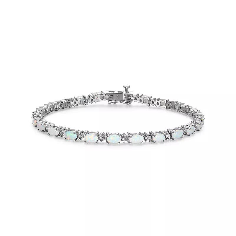 Give the perfect birthday gift with this diamond-embellished sterling silver birthstone tennis bracelet. Click on this JEWELRY & WATCHES GUIDE to learn about fit, styles, materials and more! Give the perfect birthday gift with this diamond-embellished sterling silver birthstone tennis bracelet. Click on this JEWELRY & WATCHES GUIDE to learn about fit, styles, materials and more! FEATURES Length: 7.25 in. Clasp: box Nickel safe Metal: sterling silver Plating: rhodium Finish: polished Packaging: boxed ImportedSTONE DETAILS Center stone size: 5 mm x 3 mm Shape: oval Setting: pave, prongDIAMOND DETAILS Total weight: less than 1/10 ct. Color grade: I-J Clarity: I3-I4 Shape: round Setting: pave Diamond weights are approximate. Diamond Total Weights may vary between .01 and .13 ct. Some diamonds consist of fewer than 17 facets. Gemstones may have been treated to enhance their appearance. Special care may be required. Please visit our Gemstone Treatment & Special Care Guide for more information. Image(s) may be enlarged to show detail. Size: 7.25. Color: Created Opal October. Gender: female. Age Group: adult.