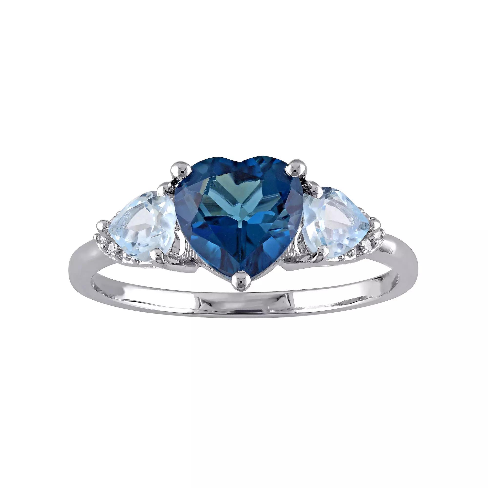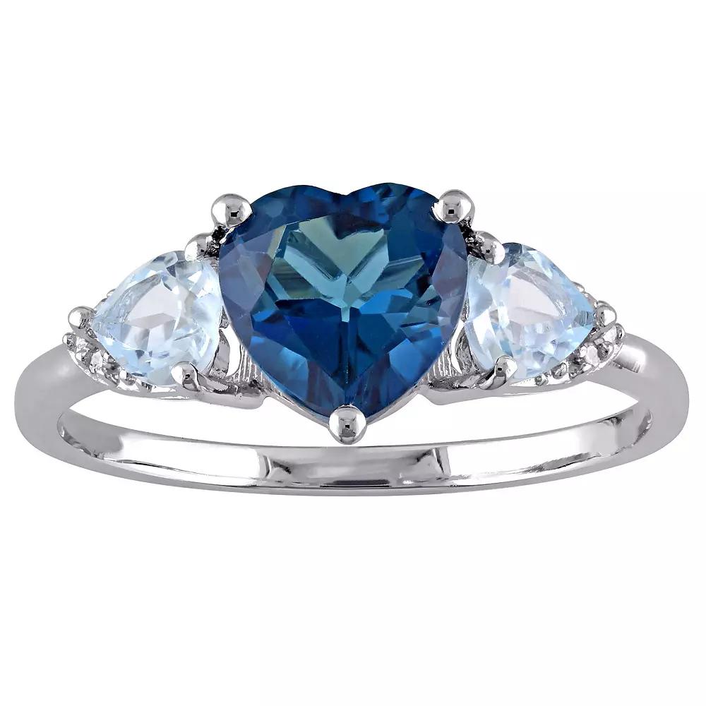 Enhance your ensembles with this stunning London blue topaz and blue topaz heart ring. Enhance your ensembles with this stunning London blue topaz and blue topaz heart ring. Width: 7.8 mm Metal: sterling silver Plating: rhodium Finish: polished Packaging: boxedSTONE DETAILS Stone type: blue topaz, London blue topaz Total weight: 2 1/5 ct. Center stone weight: 1 5/8 ct. Center stone size: 7 mm x 7 mm Shape: heart Setting: prongDIAMOND DETAILS Total weight: less than 1/10 ct. Shape: round Setting: pave Diamond weights are approximate. Diamond total weights may vary between .01 and .08 ct. Some diamonds have fewer than 17 facets. Gemstones may have been treated to enhance their appearance. Special care may be required. Please visit our Gemstone Treatment & Special Care Guide for more information. Image(s) may be enlarged to show detail. Please note, due to the high value of this item, a signature may be required upon delivery. Gender: female. Age Group: adult.