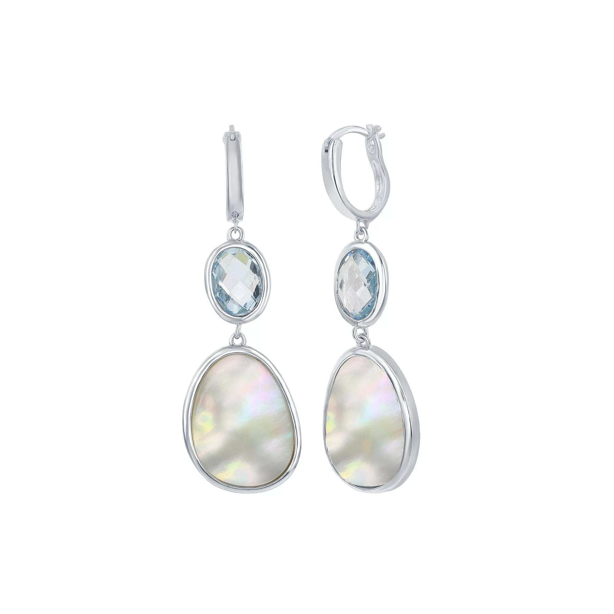 Nautica Rocks Sterling Silver Blue Topaz & Mother of Pearl Oval Drop Earrings, Women's, Silvertone