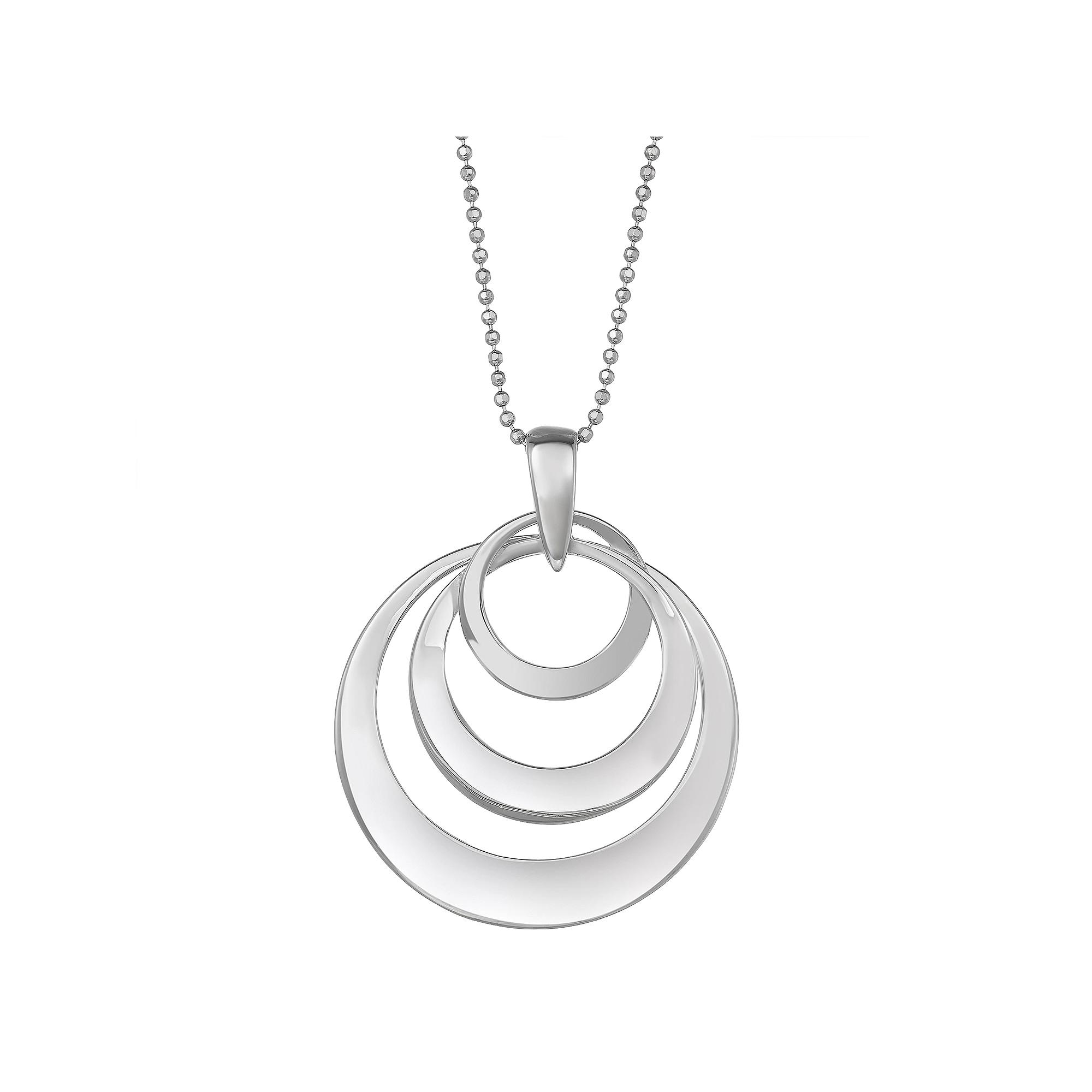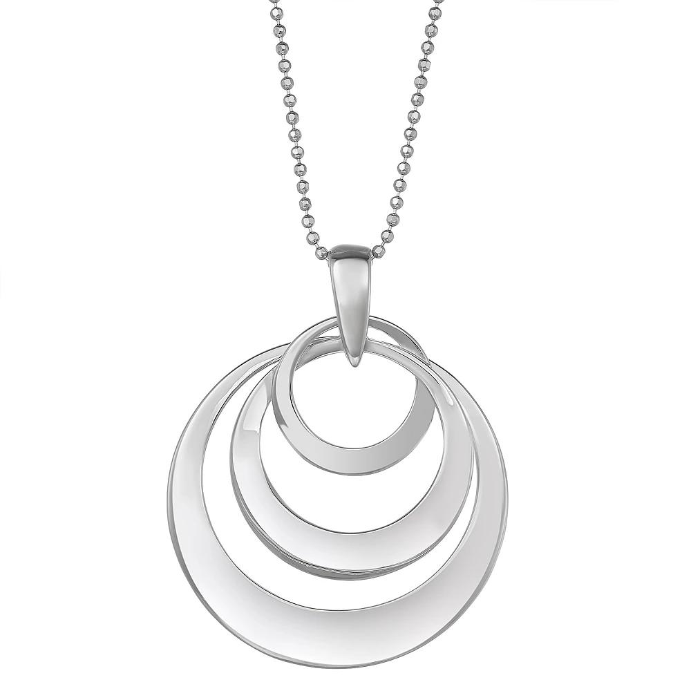 Crafted from concentric rings of polished sterling silver, this sleek and stylish pendant necklace completes your fashionable look. Crafted from concentric rings of polished sterling silver, this sleek and stylish pendant necklace completes your fashionable look. Pendant size: 1 1/4L x 1W Chain length: 18 in. Chain type: bead Clasp: lobster-claw Metal: sterling silver Plating: rhodium Finish: Polished, diamond-cut Packaging: boxed Diamond equivalent carat (ct.) Total Weight (T.W.) represents the approximate total weight of diamonds of equivalent appearance. Diamond weights are approximate. Diamond total weights may vary between .01 and .08 ct. Some diamonds have fewer than 17 facets. Size: 18. Color: White. Gender: female. Age Group: adult.