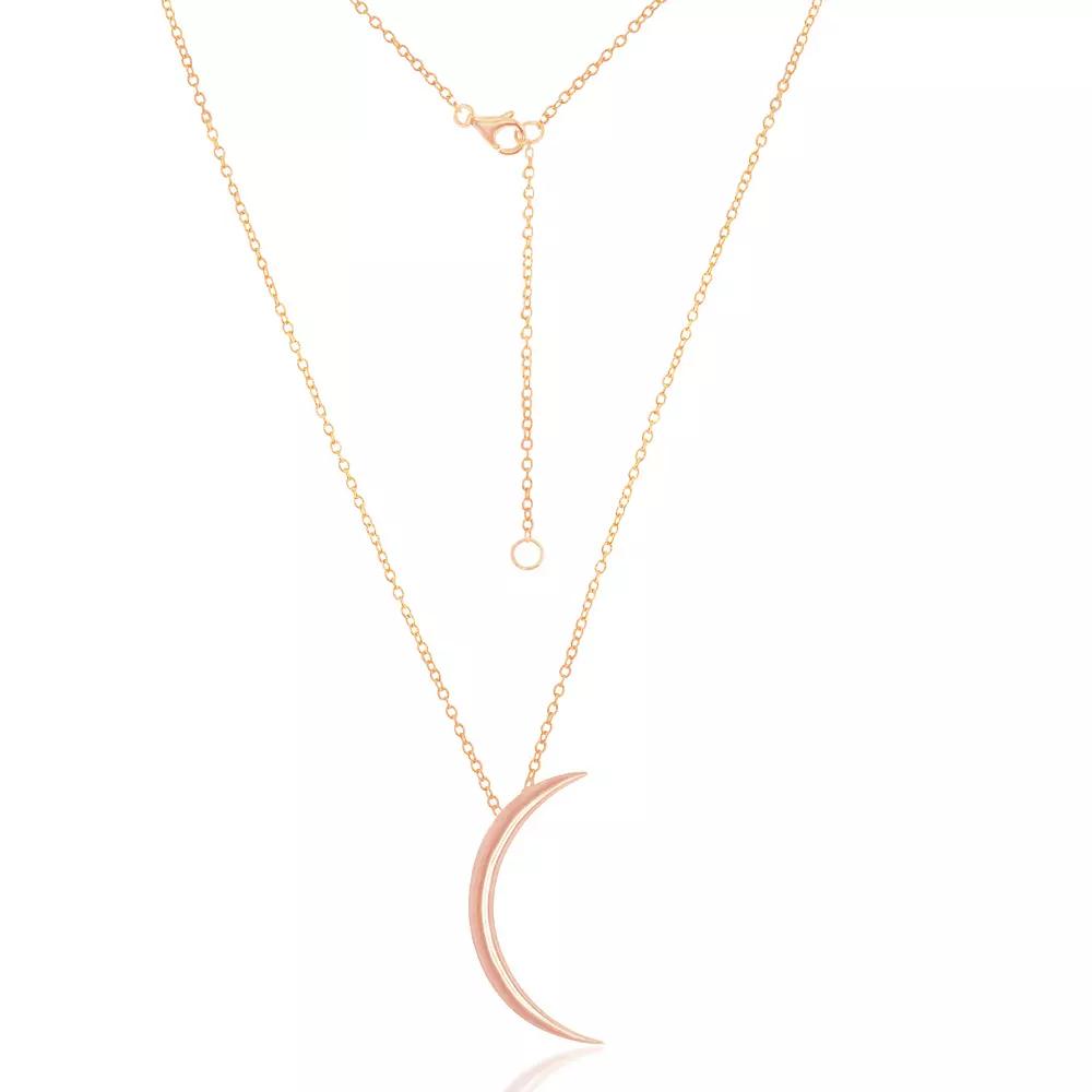 Youll love the elegant style of this Sterling Silver Crescent Moon Pendant Necklace. Click on this JEWELRY & WATCHES GUIDE to learn about fit, styles, materials and more! Youll love the elegant style of this Sterling Silver Crescent Moon Pendant Necklace. Click on this JEWELRY & WATCHES GUIDE to learn about fit, styles, materials and more! FEATURES Pendant length: 1.38 in. Chain length: 16 in. + 2-in. extender Chain type: cable Clasp: lobster-claw Metal: sterling silver Plating: 14k gold, 14k rose gold Finish: polished Packaging: boxed Nickel free Imported Size: 16-18 ADJ. Color: Rose Tone. Gender: female. Age Group: adult. Material: Gold Over Sterling.
