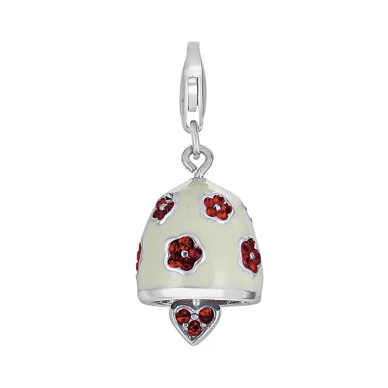 Make some noise with this supercute bell charm.Charm Details: Length: 1-in. Clasp: lobster-claw Metal: rhodium-plated sterling silver Features: free-swinging bell clapper, floral & heart accents, & ivory-colored enamelCrystal Details: Cut: round Color: red Size: One Size. Gender: female. Age Group: adult.