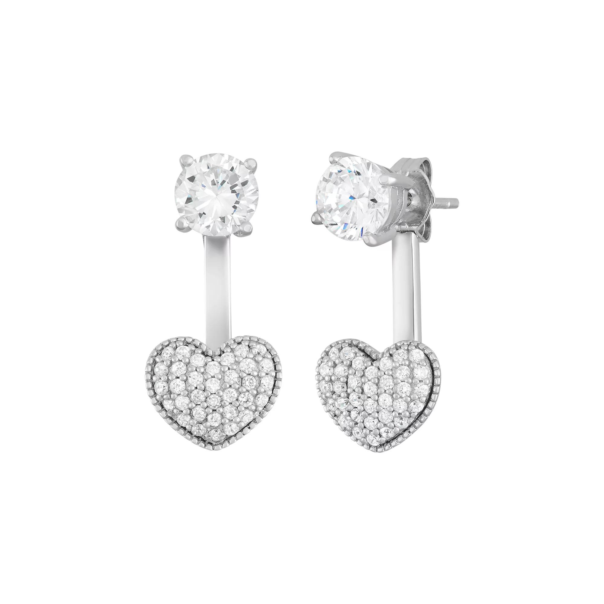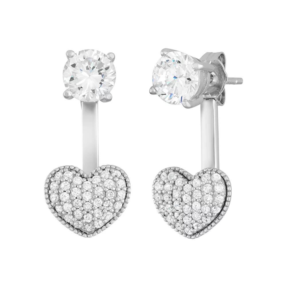 Designed with a lovely heart motif, these cubic zirconia front-back drop earrings offer sensational style. Comes in a gift box. EARRING DETAILS Length: .76 in. Backings: post Metal: rhodium-plated sterling silver CUBIC ZIRCONIA DETAILS Total weight: 2 5/8 ct. Shape: round Setting: prong, pave Size: One Size. Color: White. Gender: female. Age Group: adult.