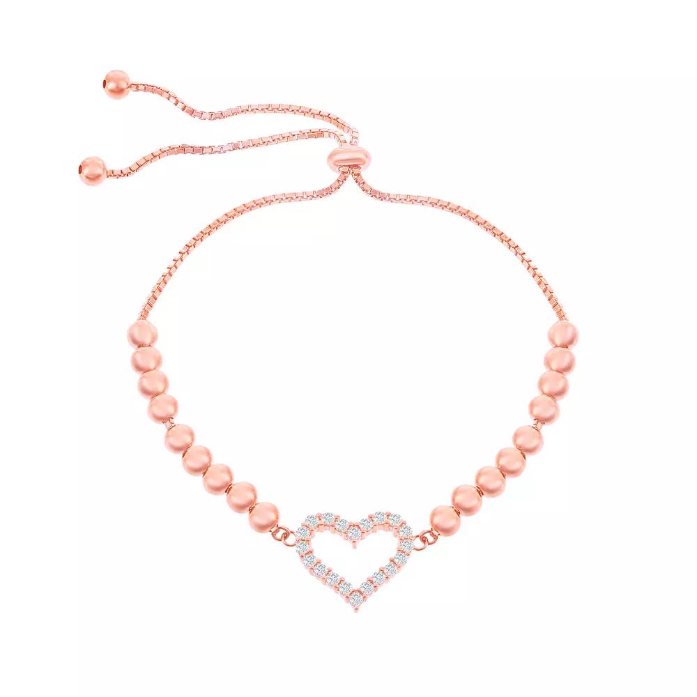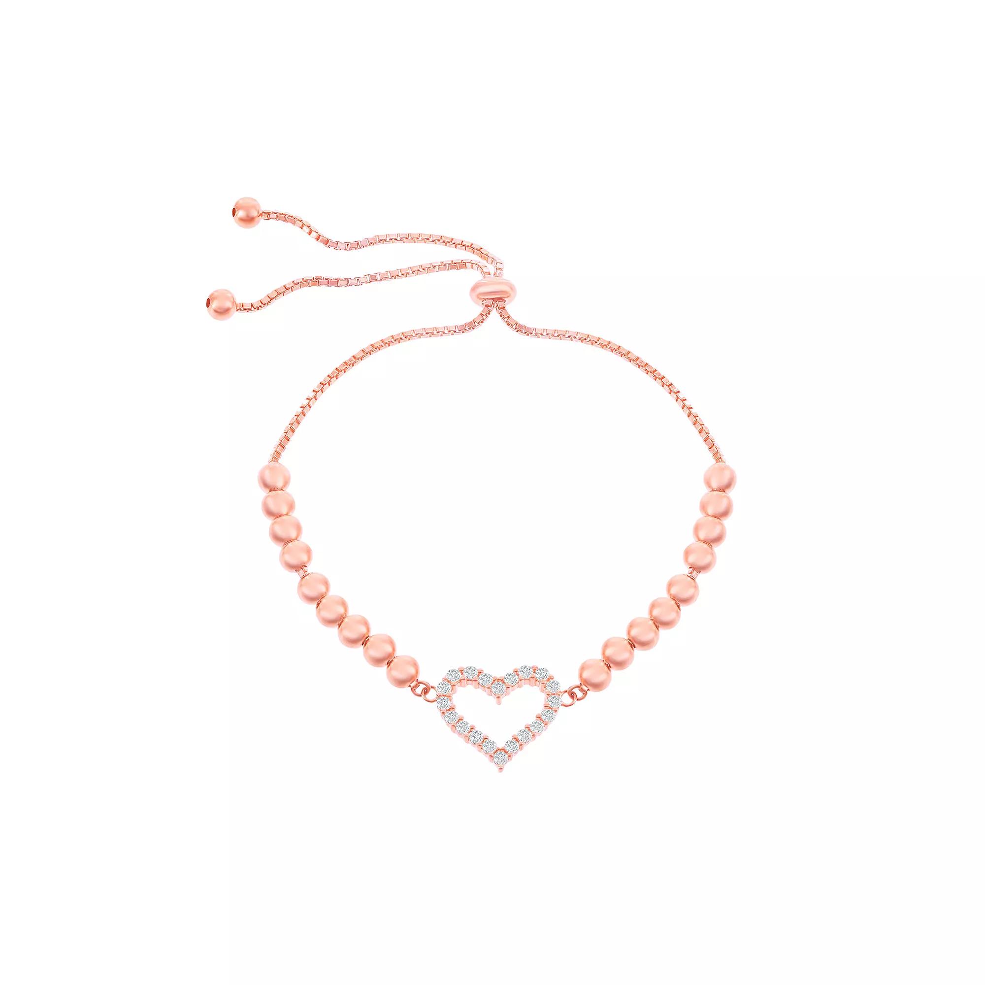 Decorated with shining beads and a radiant cubic zirconia-studded heart link, this lariat bracelet adds a romantic touch to any ensemble. Decorated with shining beads and a radiant cubic zirconia-studded heart link, this lariat bracelet adds a romantic touch to any ensemble. BRACELET DETAILS Length: adjusts from 7 in. to 9.75 in. Clasp: adjustable Metal: sterling silver Finish: polished Nickel free Packaging: boxedCUBIC ZIRCONIA DETAILS Total weight: 1 ct. Shape: round Setting: prong Gemstones may have been treated to enhance their appearance. Special care may be required. Size: 5-9" ADJ. Color: White. Gender: female. Age Group: adult.