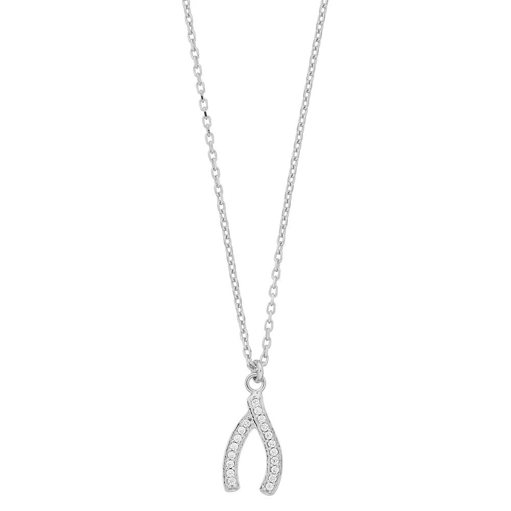 A wishbone design and cubic zirconia accents make this sterling silver necklace a charming complement to your everyday ensembles. A wishbone design and cubic zirconia accents make this sterling silver necklace a charming complement to your everyday ensembles. Pendant size: 5/8"L x 3/8"W Chain length: 18 in. Chain type: cable Clasp: spring-ring Metal: sterling silver Finish: polished Additional details: CZ accents Packaging: boxed Please note, due to the high value of this item, a signature may be required upon delivery. Size: 18". Color: White. Gender: female. Age Group: adult.