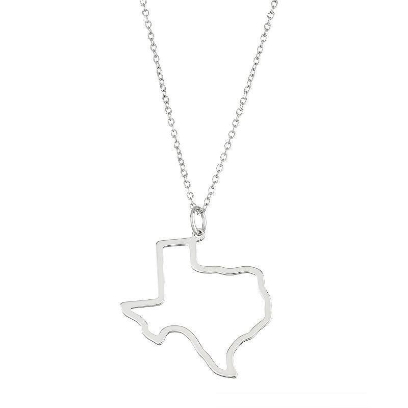 Show off your hometown pride with this sterling silver cutout state necklace.PENDANT DETAILS Pendant length: .94 in. - 1.19 in. Chain length: 18 in. Chain type: rolo Clasp: spring-ring Metal: sterling silver Plating: rhodium Size: 18". Color: Grey. Gender: female. Age Group: adult. Material: Sterling Silver Rhodium.
