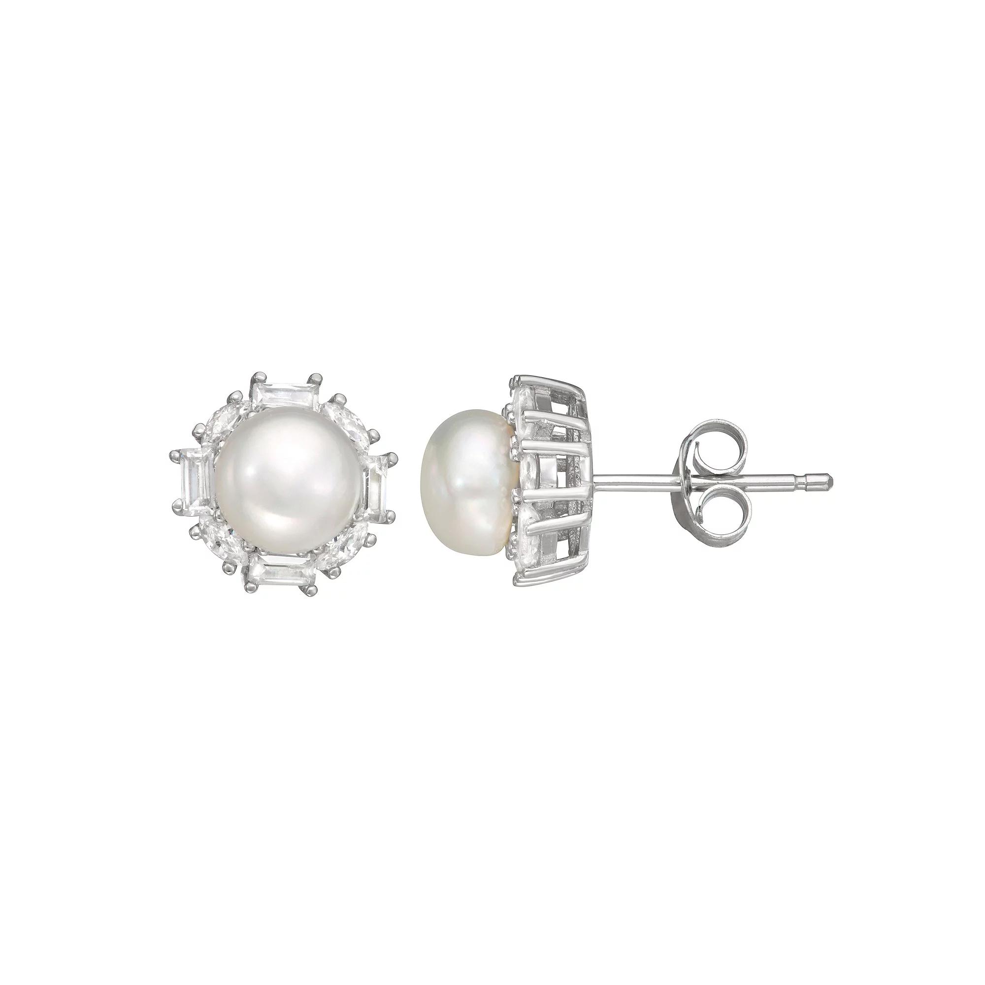 Add a lustrous touch to your favorite ensembles with these elegant freshwater cultured pearl and cubic zirconia stud earrings. Add a lustrous touch to your favorite ensembles with these elegant freshwater cultured pearl and cubic zirconia stud earrings. Length: 10 mm Backings: post Metal: sterling silver Plating: rhodium Finish: polished Packaging: boxedSTONE DETAILS Stone type: cubic zirconia Total weight: 9/10 ct. Center stone size: 6.5 mm Shape: rectangle Setting: prongCULTURED PEARL DETAILS Type: freshwater Size: 6.5 mm Shape: button Color: white Gemstones may have been treated to enhance their appearance. Special care may be required. Please visit our Gemstone Treatment & Special Care Guide for more information. Please note, due to the high value of this item, a signature may be required upon delivery. Gender: female. Age Group: adult.