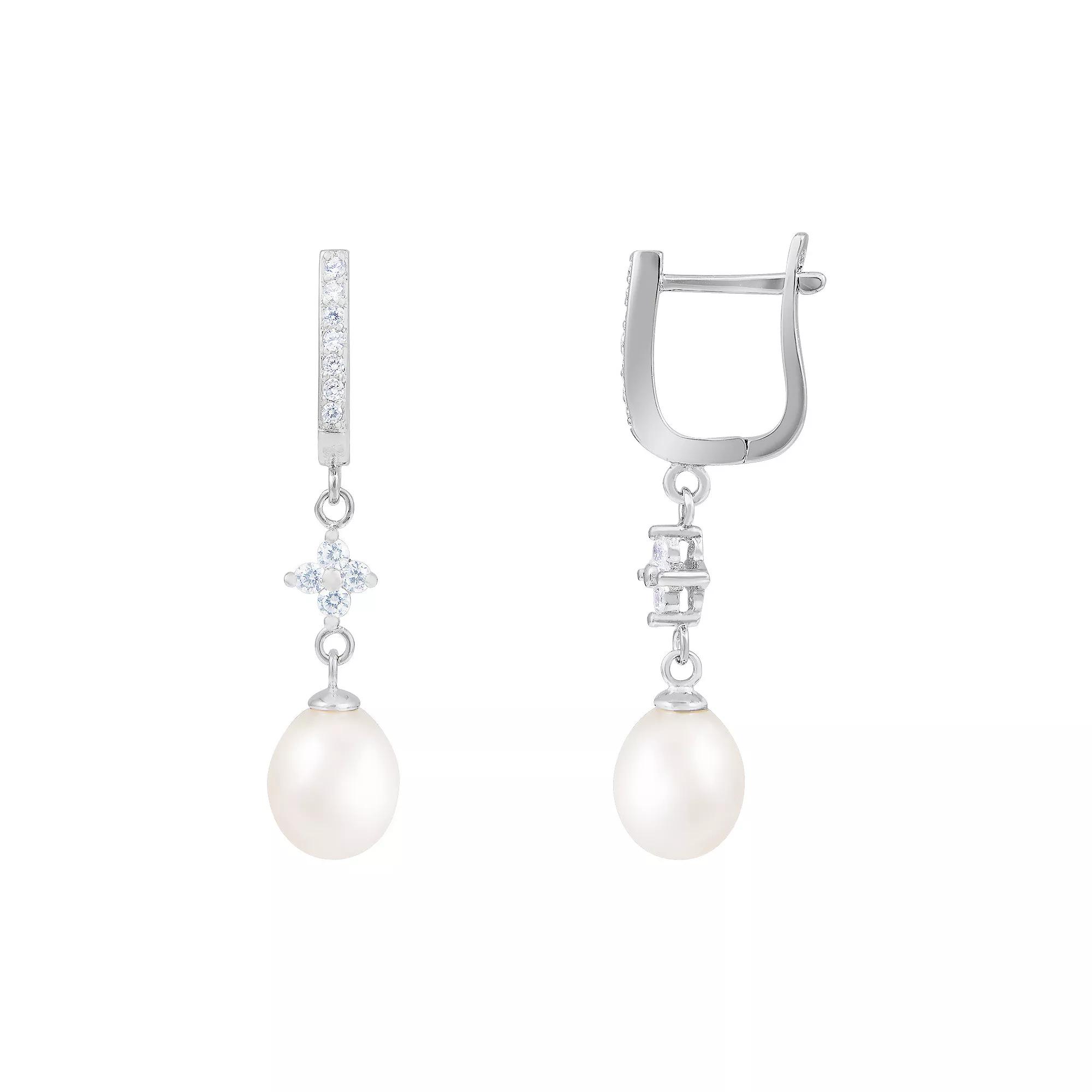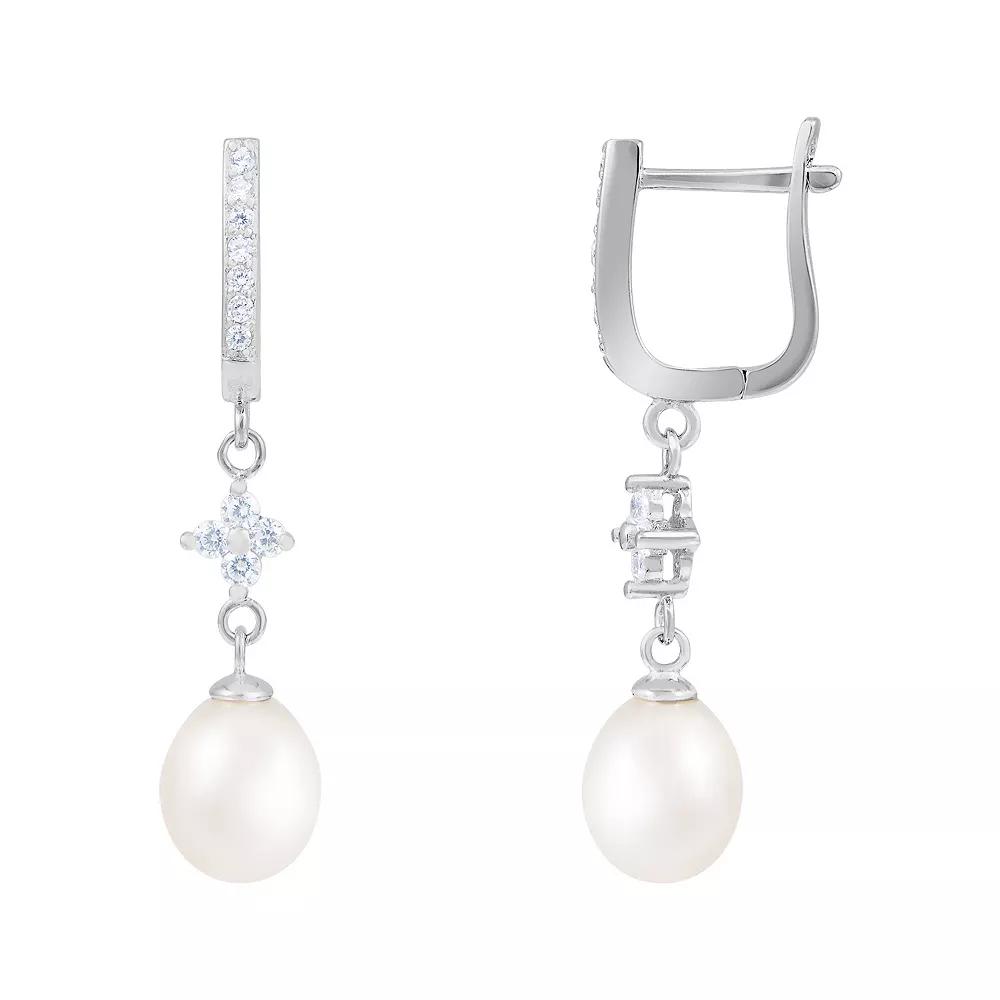 A freshwater pearl and cubic zirconia details give these dangle earrings an elegant look. A freshwater pearl and cubic zirconia details give these dangle earrings an elegant look. Length: 1.5 Closures: leverback Metal: sterling silver Finish: polished Plating: rhodium Packaging: boxed Cubic zirconia detailsCULTURED PEARL DETAILS Color: white Type: cultured freshwater Shape: drop Size: 7-8 mm Treatment: bleached Gemstones may have been treated to enhance their appearance. Special care may be required. Please visit our Gemstone Treatment & Special Care Guide for more information. Size: One Size. Gender: female. Age Group: adult.