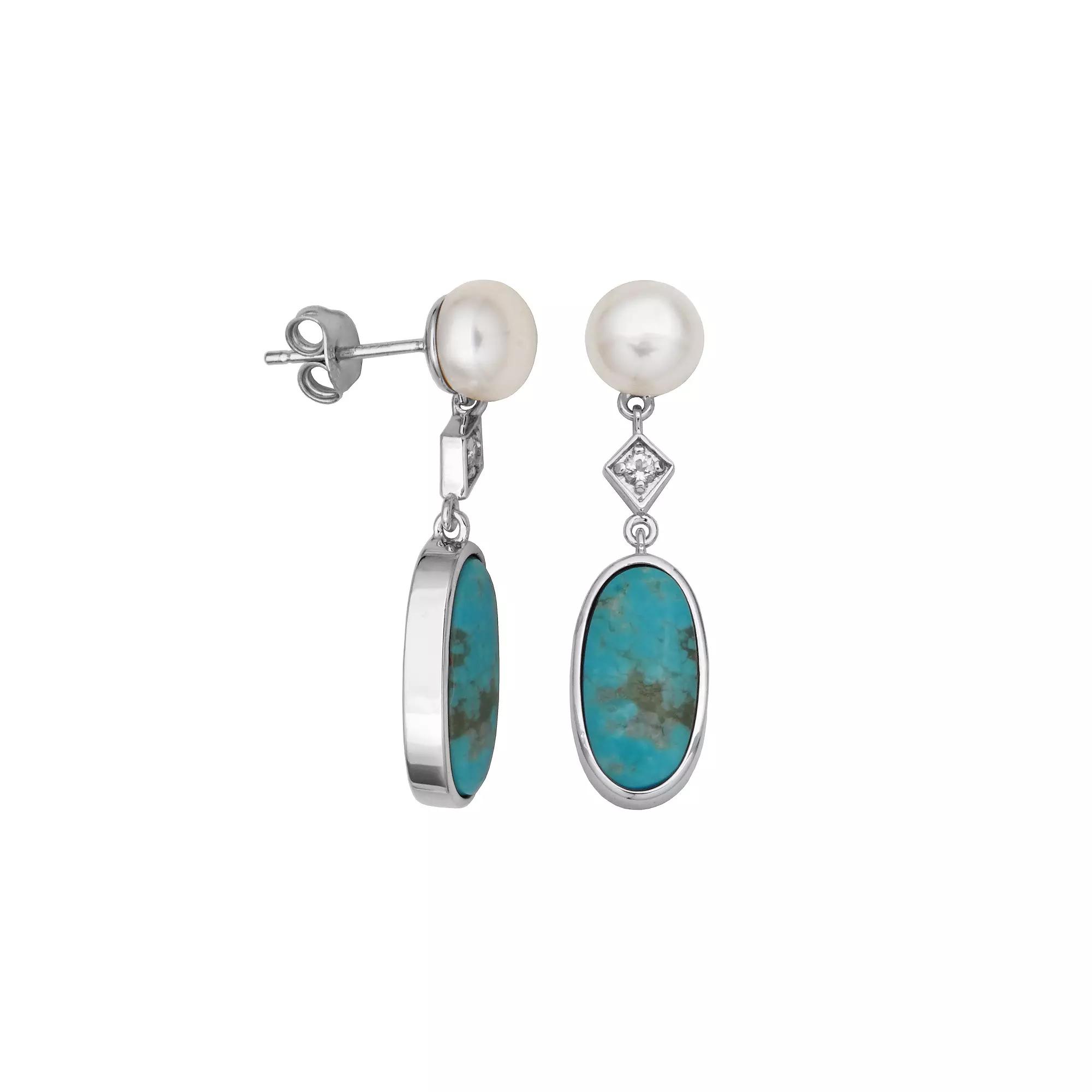 Youll love wearing these Sterling Silver Genuine Turquoise White Mother-of-Pearl and White Topaz Dangle Earrings. Click on this JEWELRY & WATCHES GUIDE to learn about fit, styles, materials and more! Youll love wearing these Sterling Silver Genuine Turquoise White Mother-of-Pearl and White Topaz Dangle Earrings. Click on this JEWELRY & WATCHES GUIDE to learn about fit, styles, materials and more! FEATURES Earring dimensions: 30 mm x 10 mm Backings: post Nickel free Metal: sterling silver Plating: rhodium Finish: polished Packaging: boxed ImportedSTONE DETAILS Stone type: mother of pearl, white topaz, and turquoise Total weight: 7.22 ct. Center stone weight: 4 ct. Center stone size: 14 mm x 7 mm Shape: oval and round Setting: glue/epoxy Size: One Size. Gender: female. Age Group: adult.
