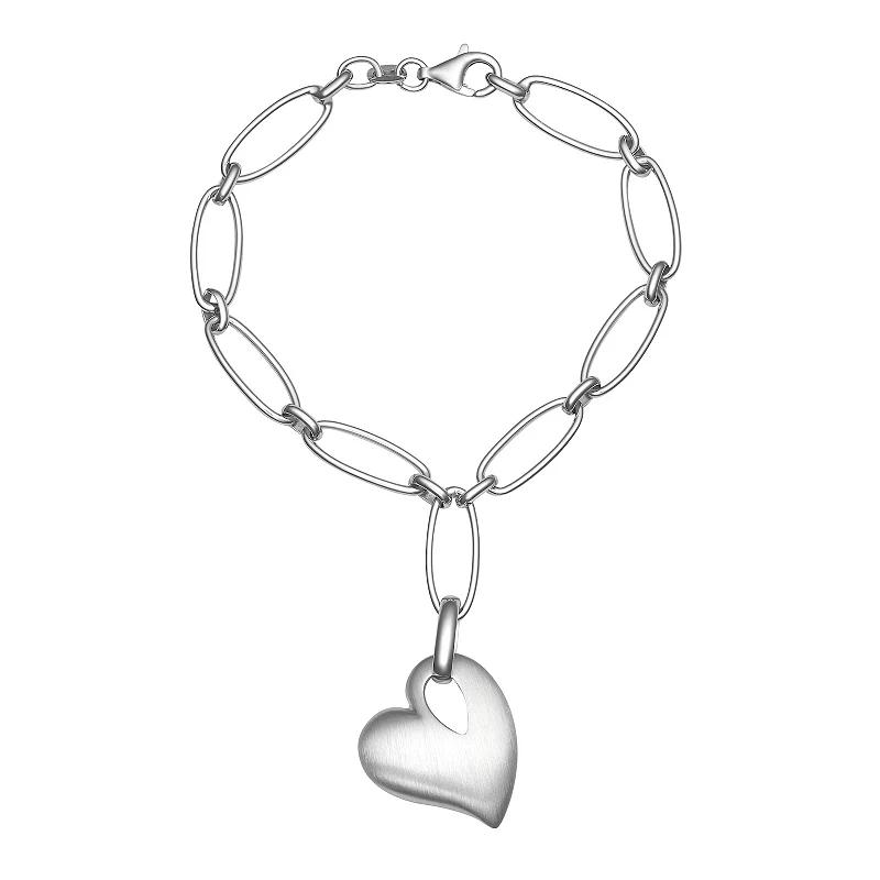 Sweet and stylish, this sterling silver heart charm bracelet is sure to become an everyday favorite. Click on this JEWELRY & WATCHES GUIDE to learn about fit, styles, materials and more! Sweet and stylish, this sterling silver heart charm bracelet is sure to become an everyday favorite. Click on this JEWELRY & WATCHES GUIDE to learn about fit, styles, materials and more! FEATURES Length: 7 in. Clasp: lobster-claw Nickel free Metal: sterling silver Plating: rhodium Finish: matte, polished Packaging: dust bag Size: 7.5. Color: Silver Tone. Gender: female. Age Group: adult.